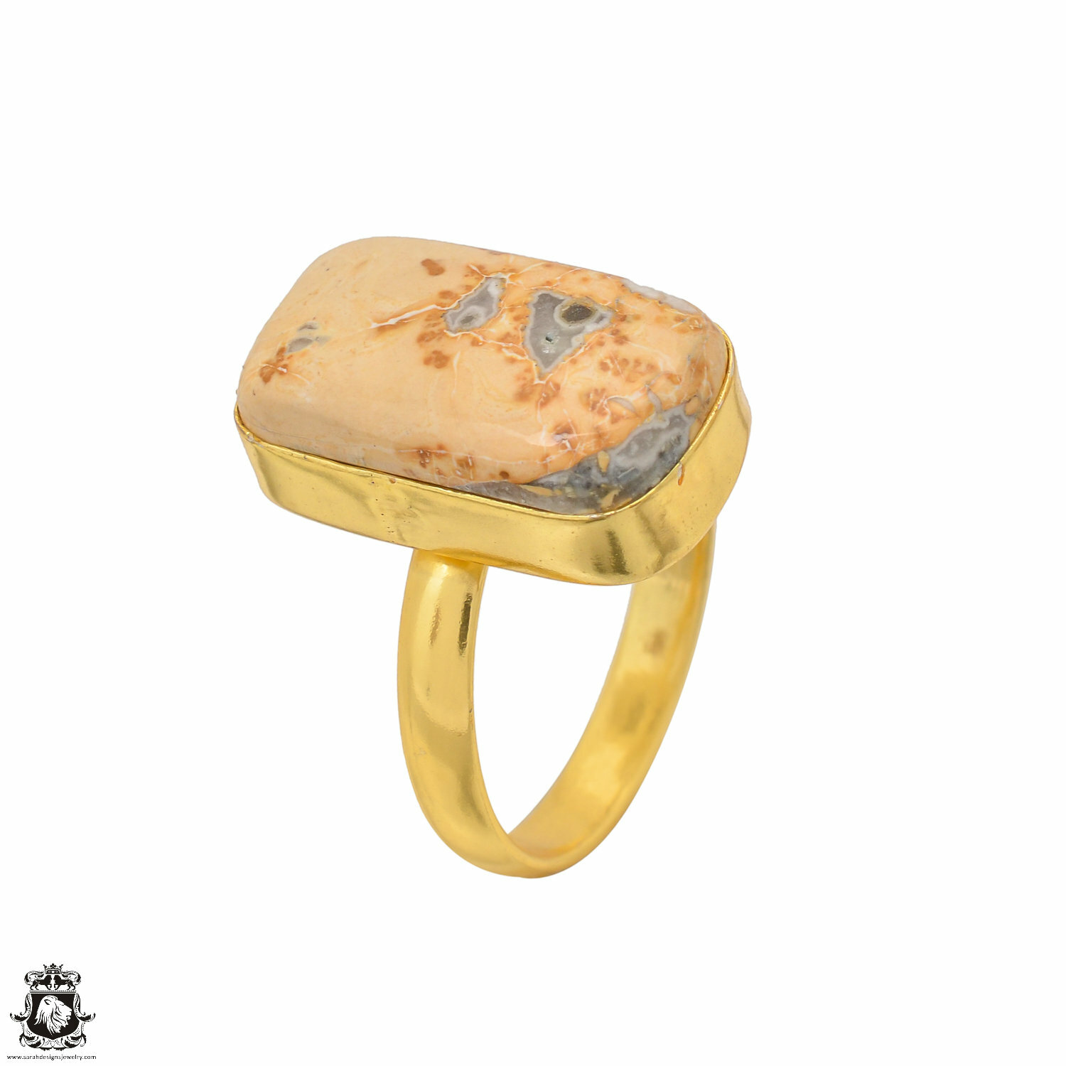 как выглядит Size 9.5 - Size 11 Adjustable Yellow Merlinite 24K Gold Plated Ring GPR1527 фото