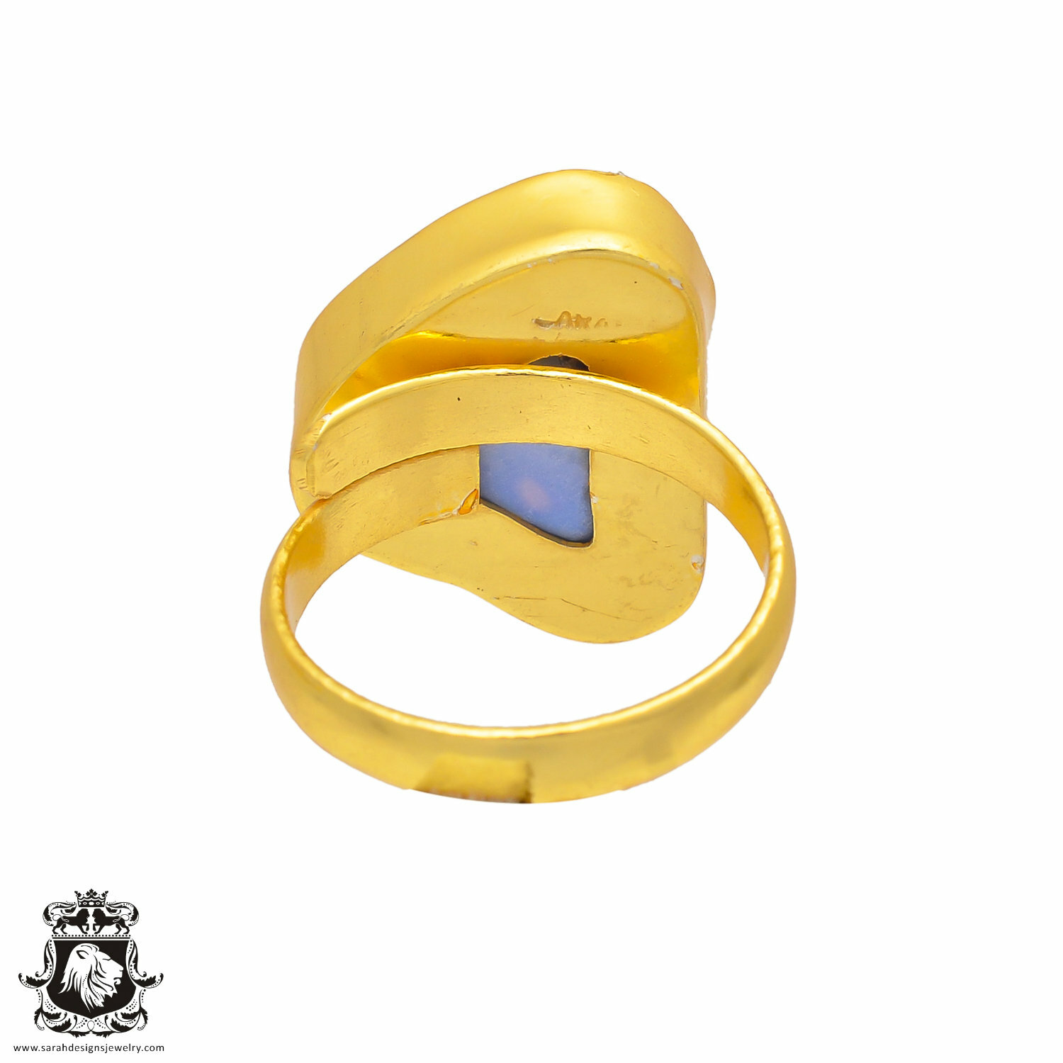 как выглядит Size 9.5 - Size 11 Adjustable Ocean Agate Geode 24K Gold Plated Ring GPR288 фото