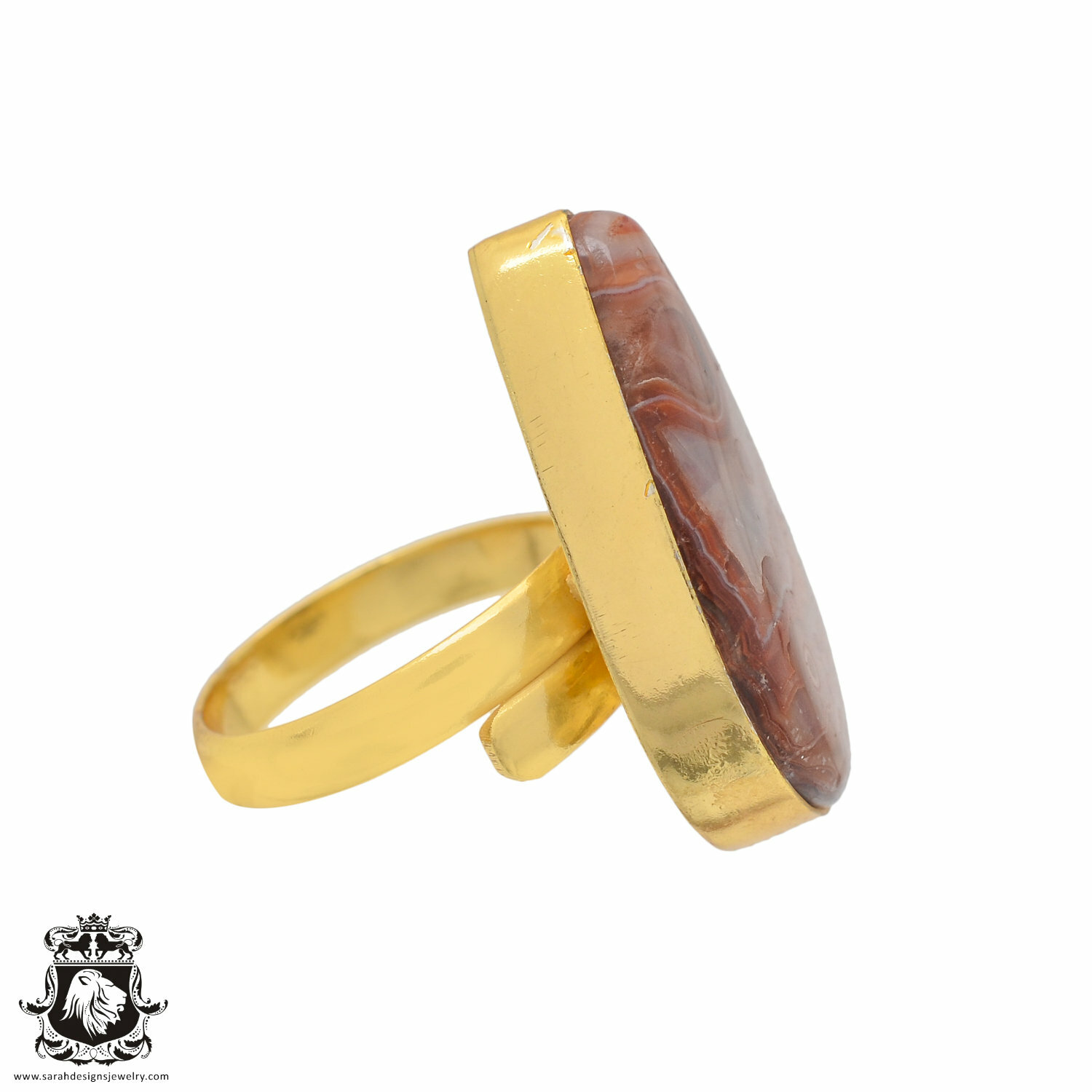 как выглядит Size 9.5 - Size 11 Adjustable Crazy Lace Agate 24K Gold Plated Ring GPR863 фото