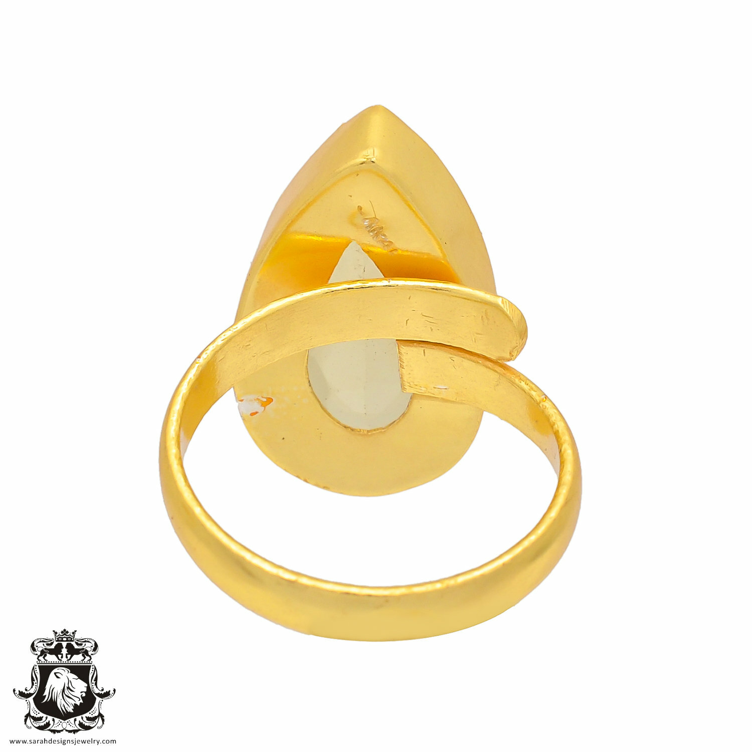 Size 9.5 - Size 11 Adjustable Lemon Quartz 24K Gold Plated Ring GPR252