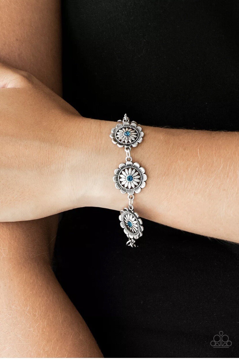 Paparazzi Funky Flower Child - Blue Rhinestone - Ornate Silver Bracelet New Pkg