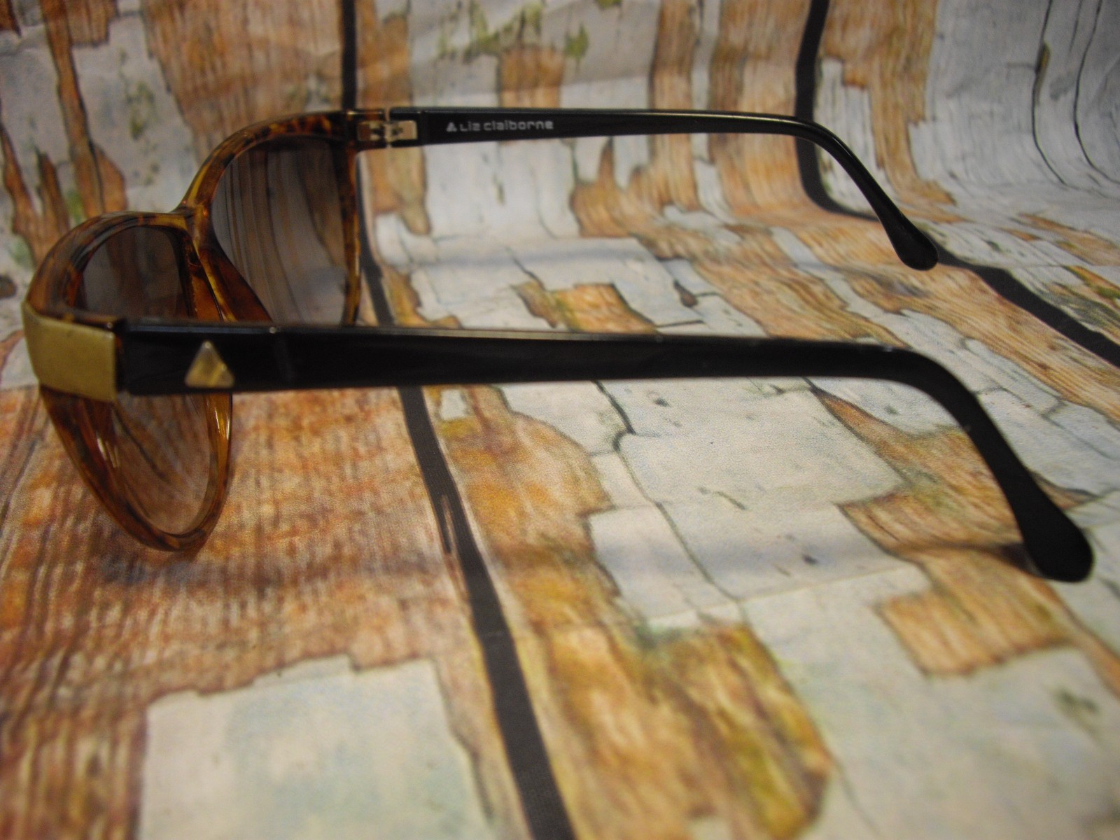 как выглядит Vintage Liz Claiborne Black Gold Tortoise Cat Eye Oversized Sunglasses Frames фото
