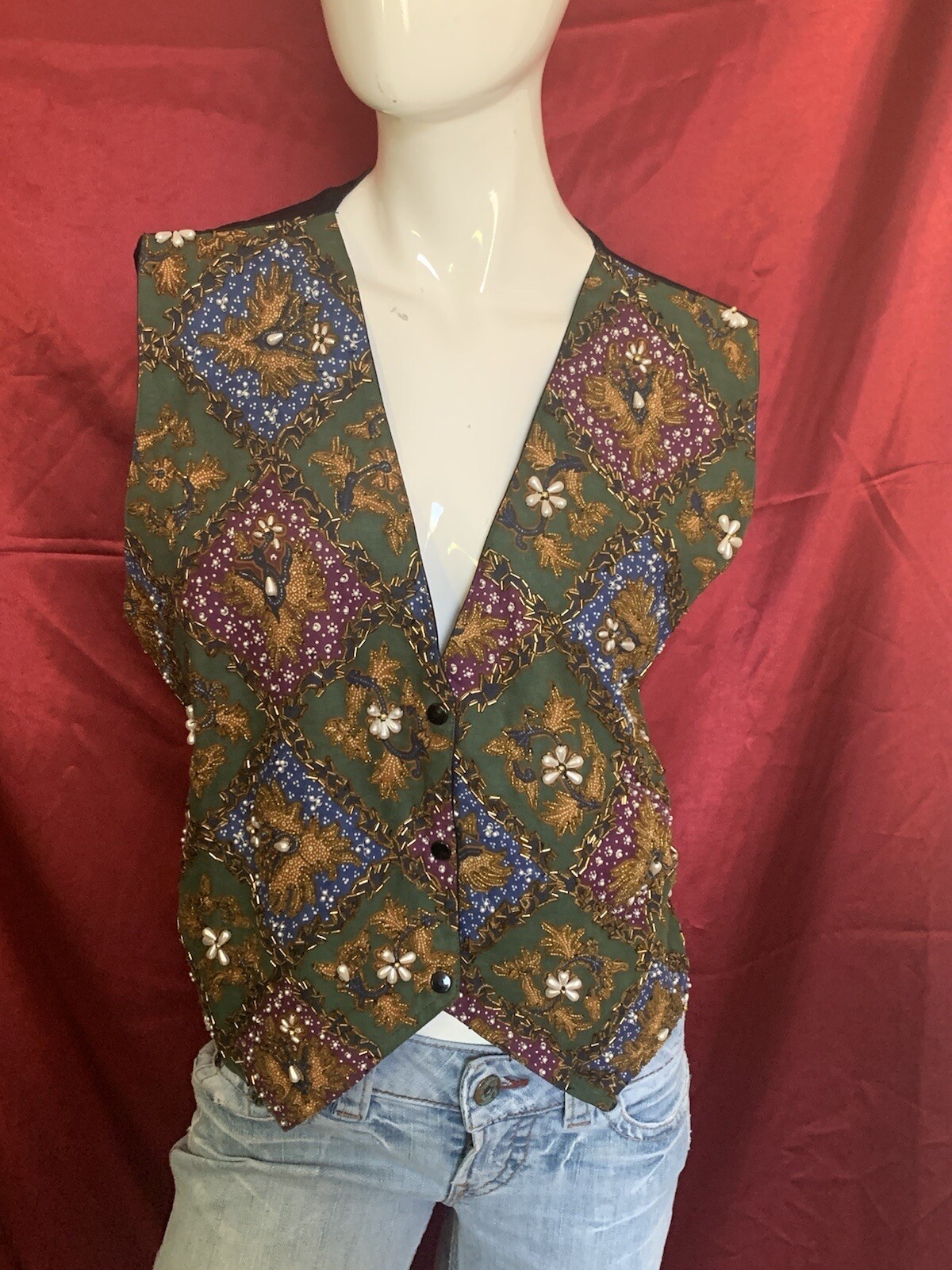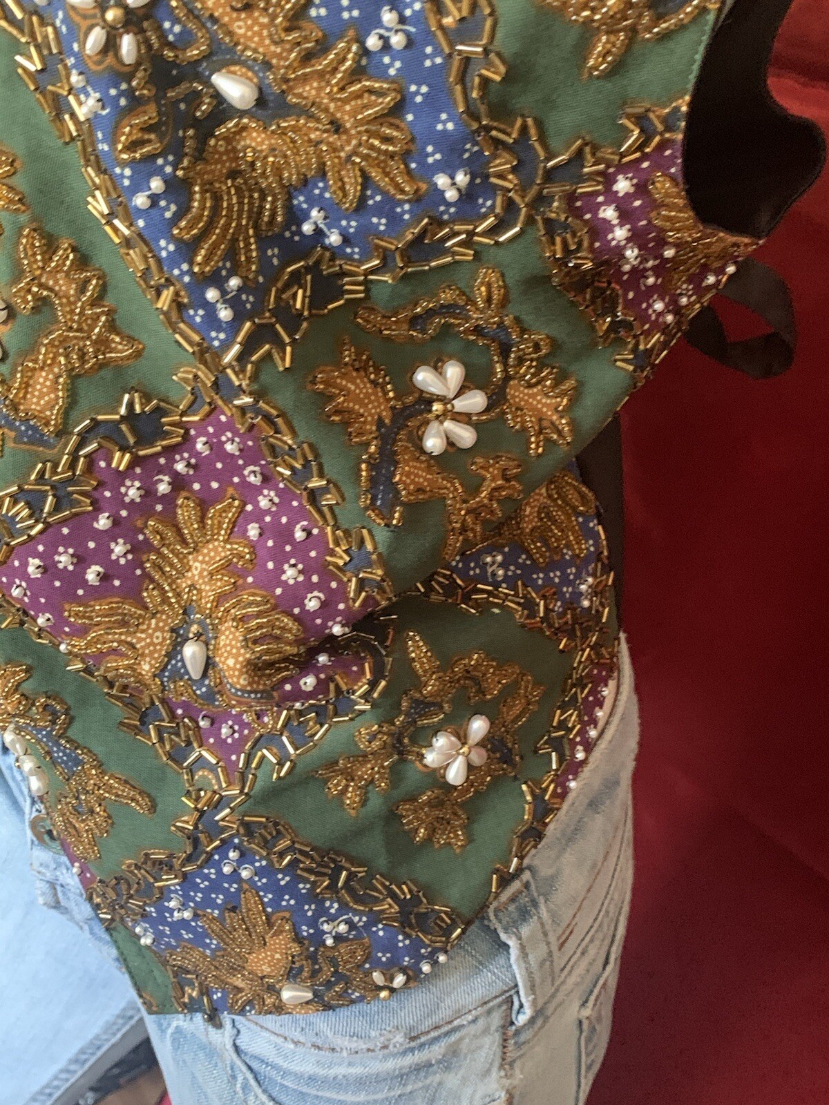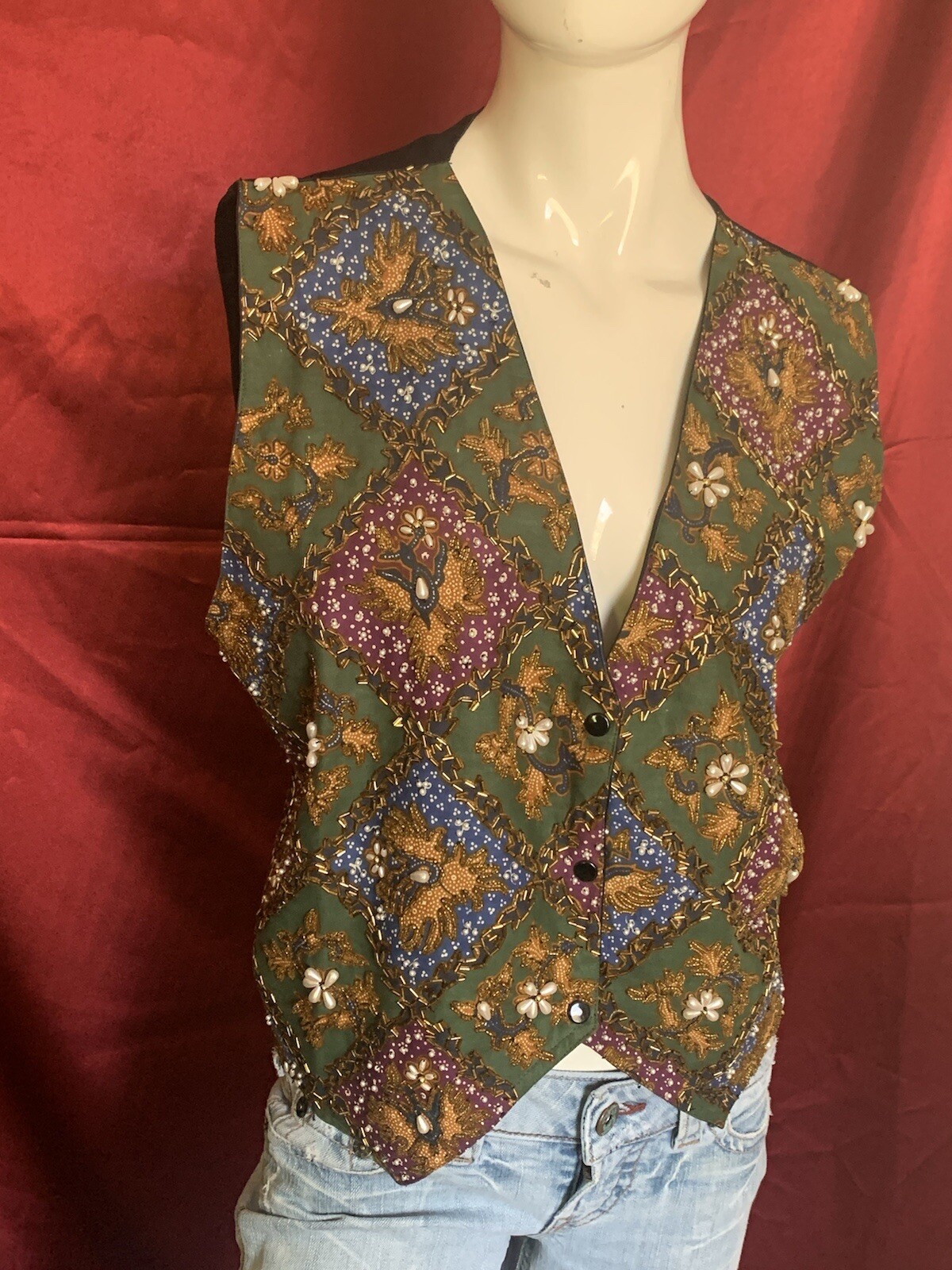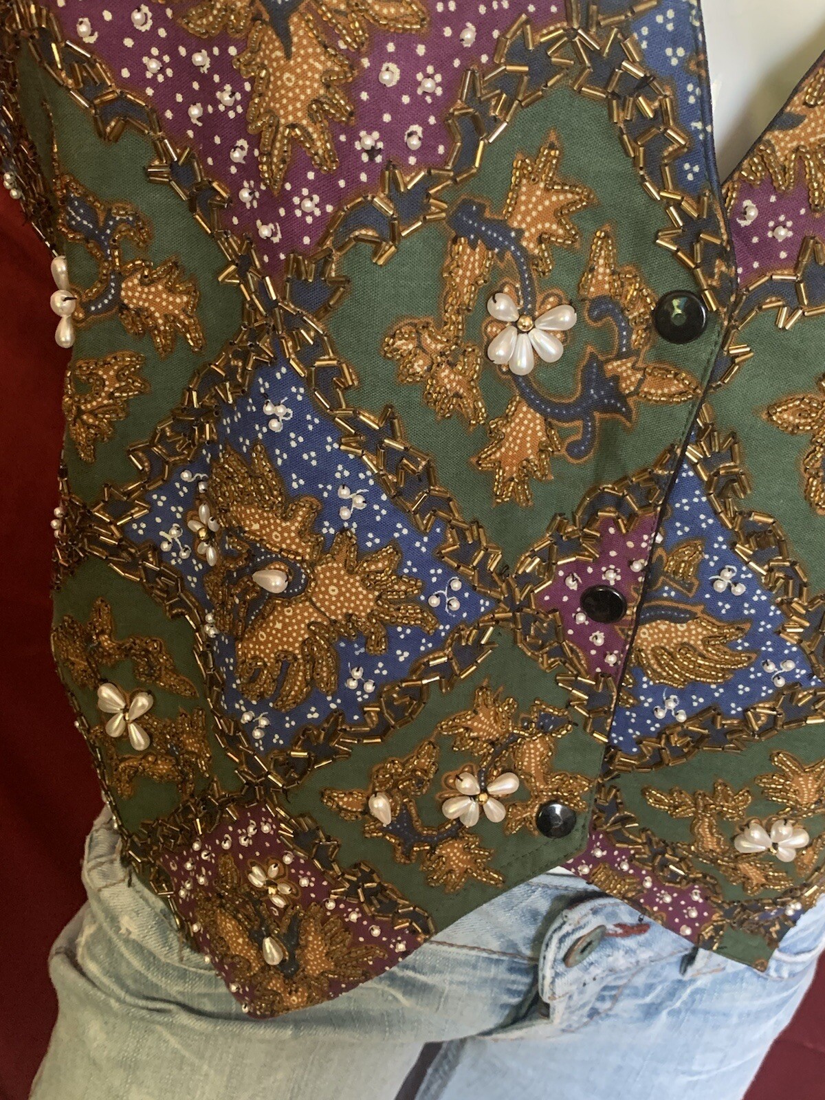 как выглядит Vintage Beautifully Beaded Bali Gem Vest Size Large embellished 100 Cotton фото