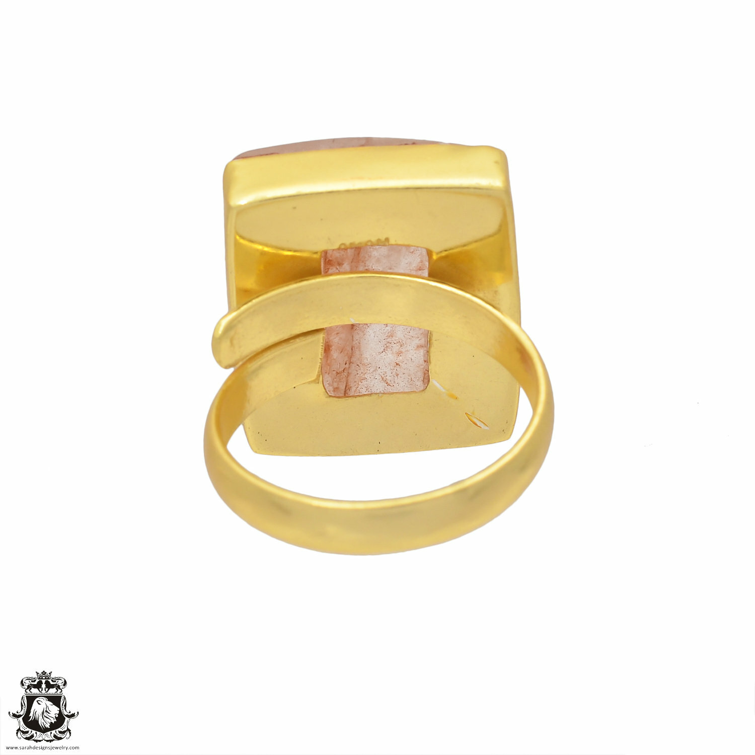 Size 7.5 - Size 9 Adjustable Lodolite Quartz 24K Gold Plated Ring GPR37