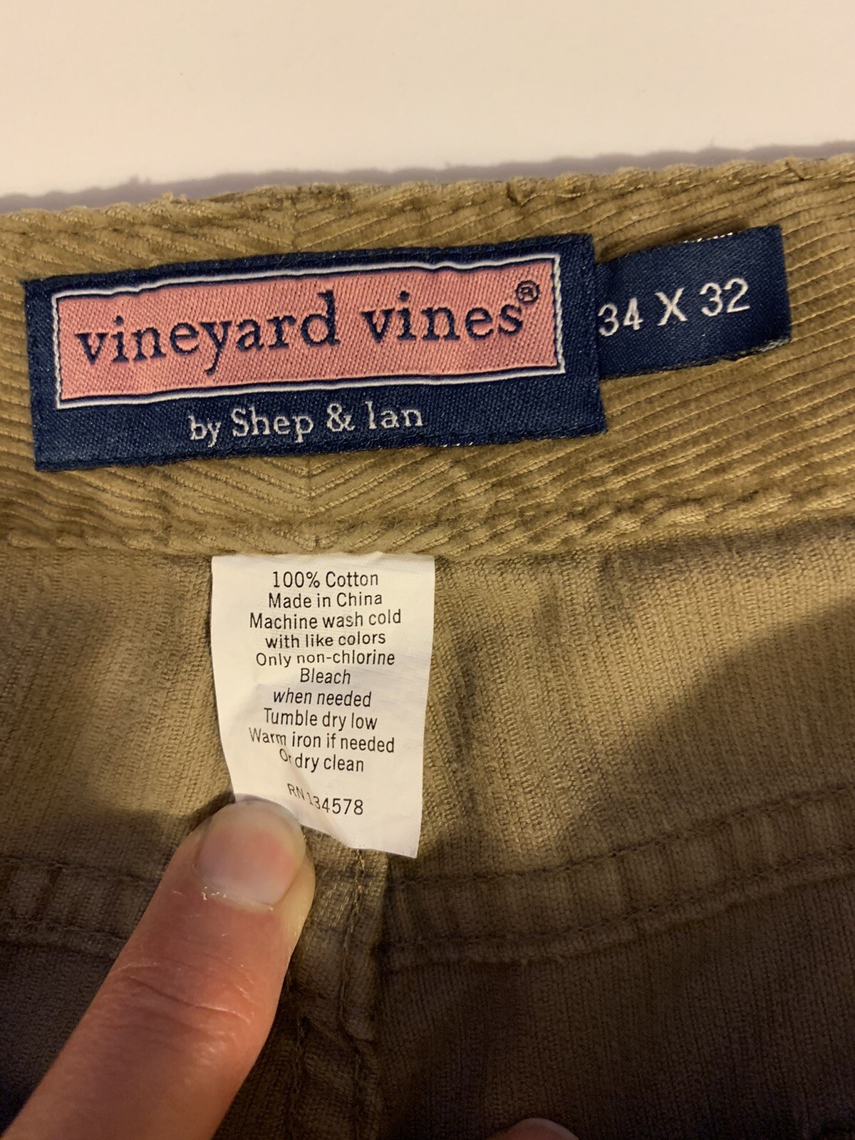 как выглядит Vineyard Vines Mens Dark Khaki Brown 5 Pocket Corduroy Pants Straight Leg 34x32 фото