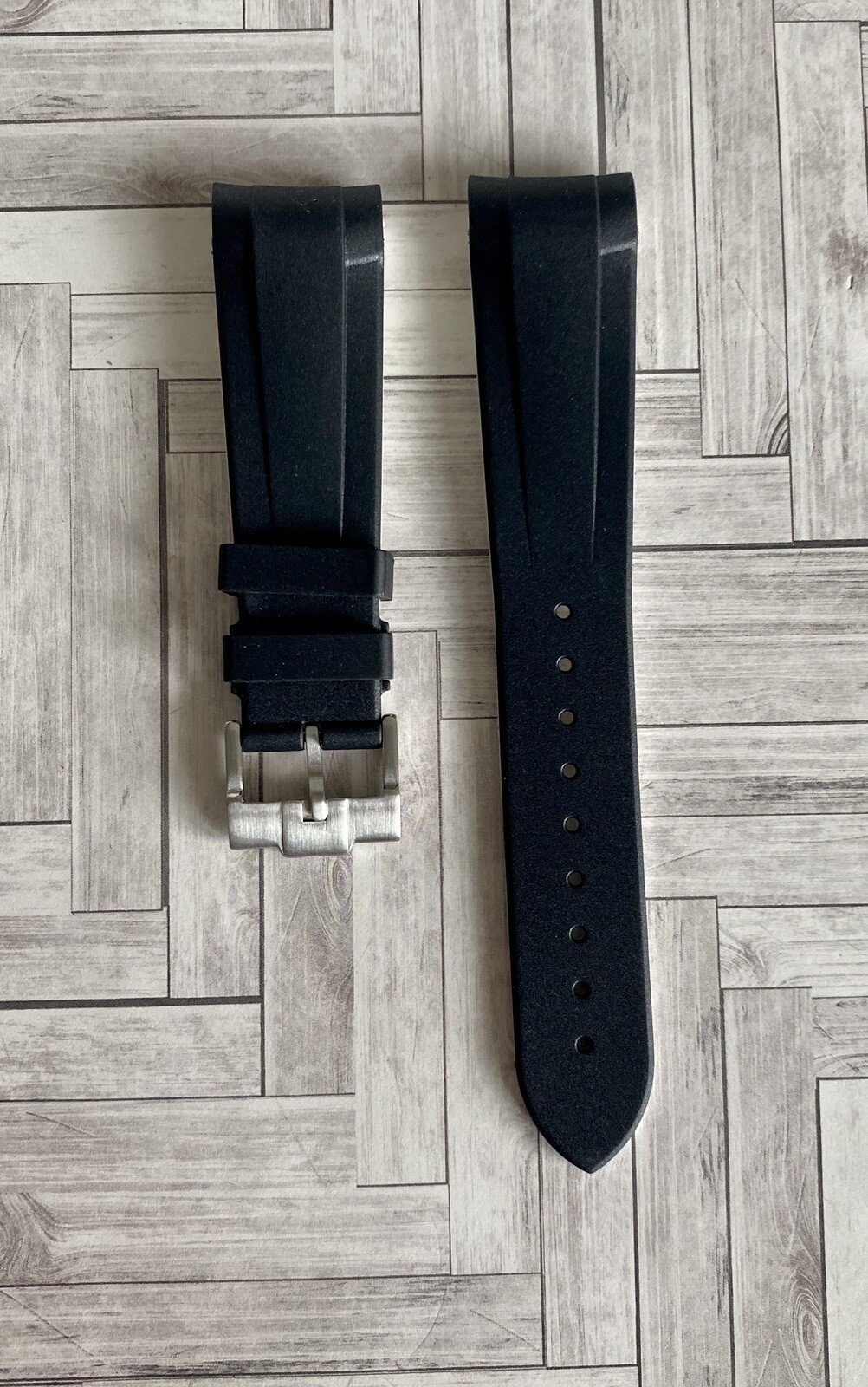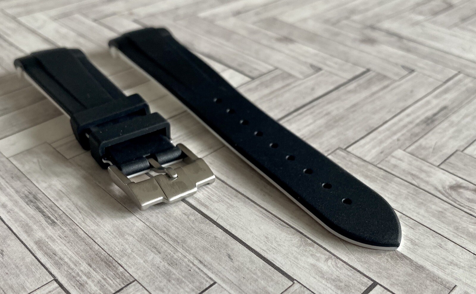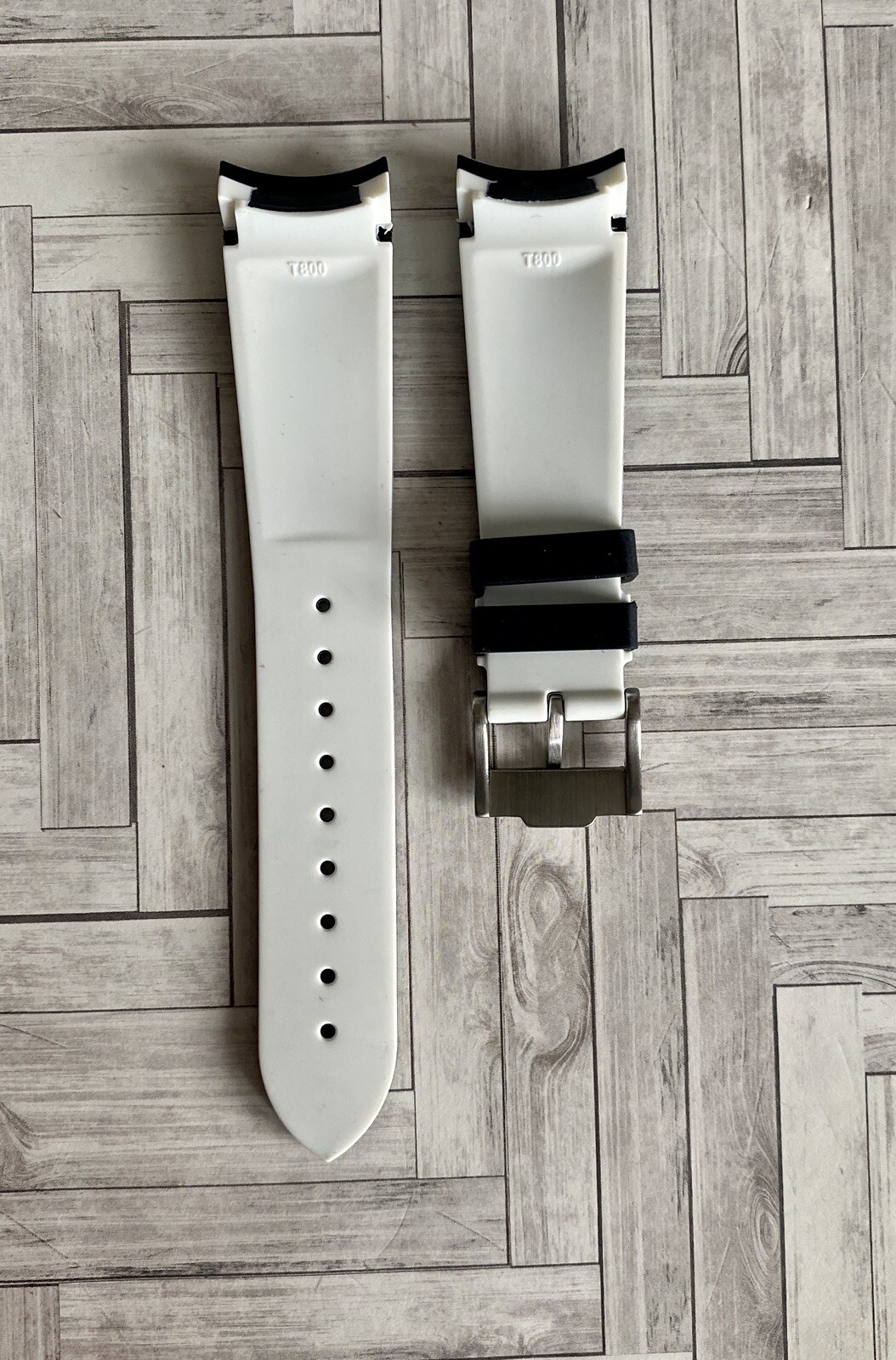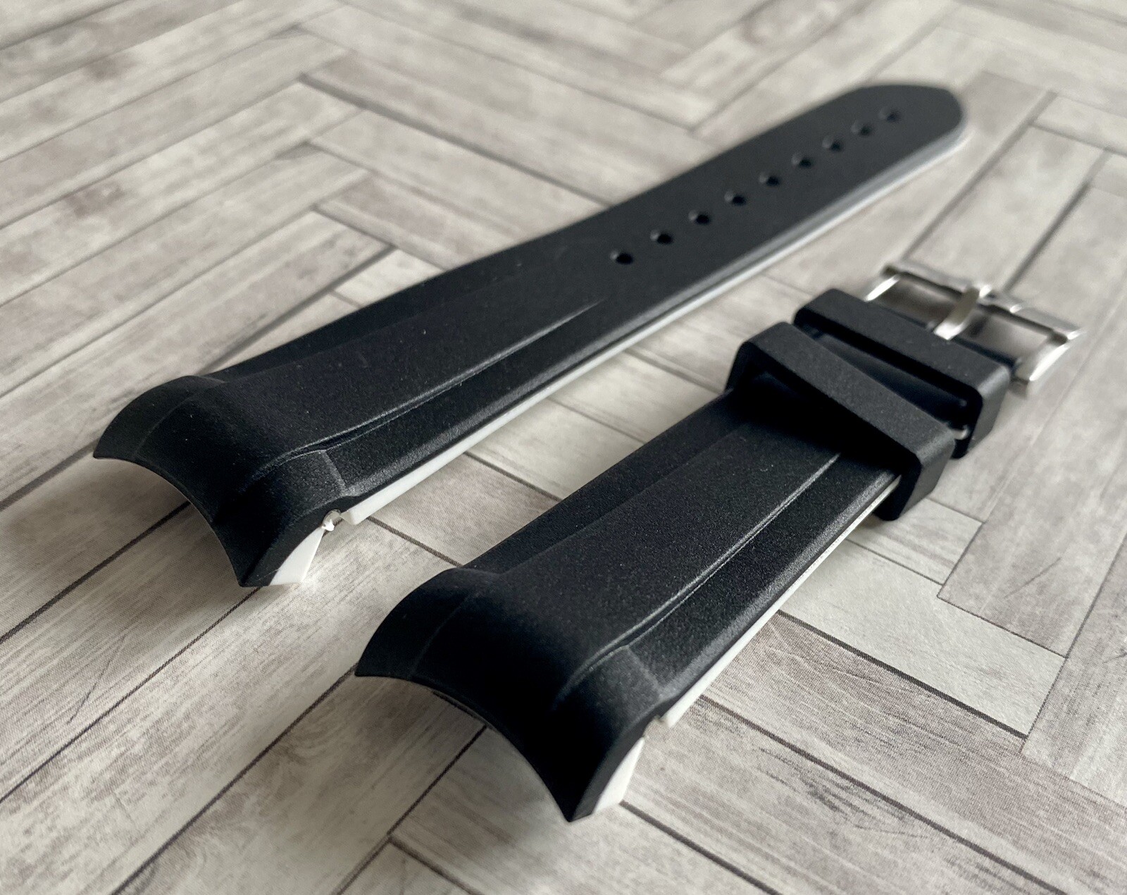 22mm BLACK/WHITE Vulcanized Curved rubber Strap 41mm TUDOR Pelagos Watch Band