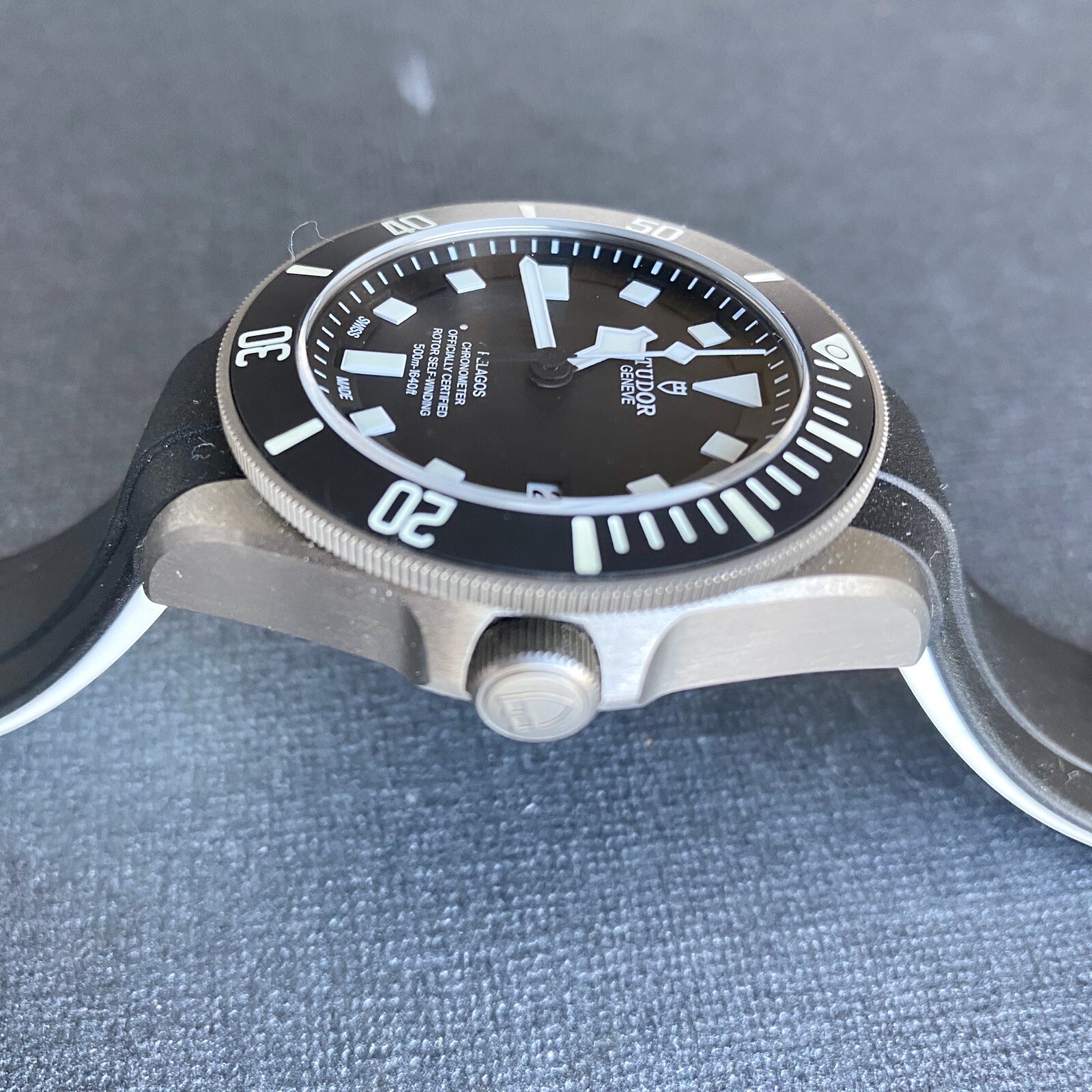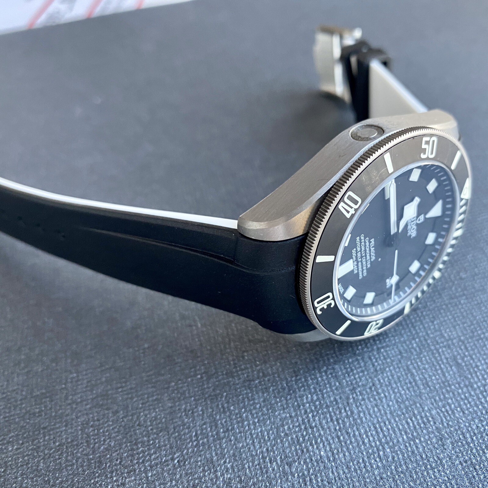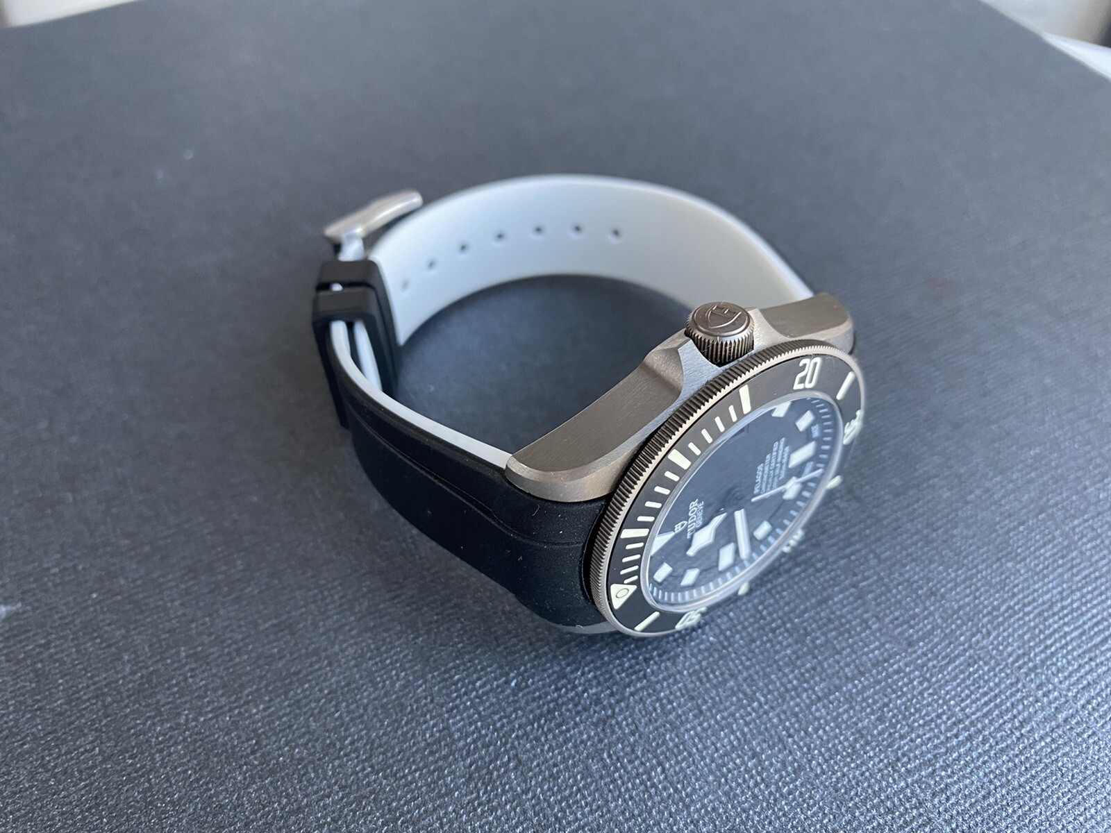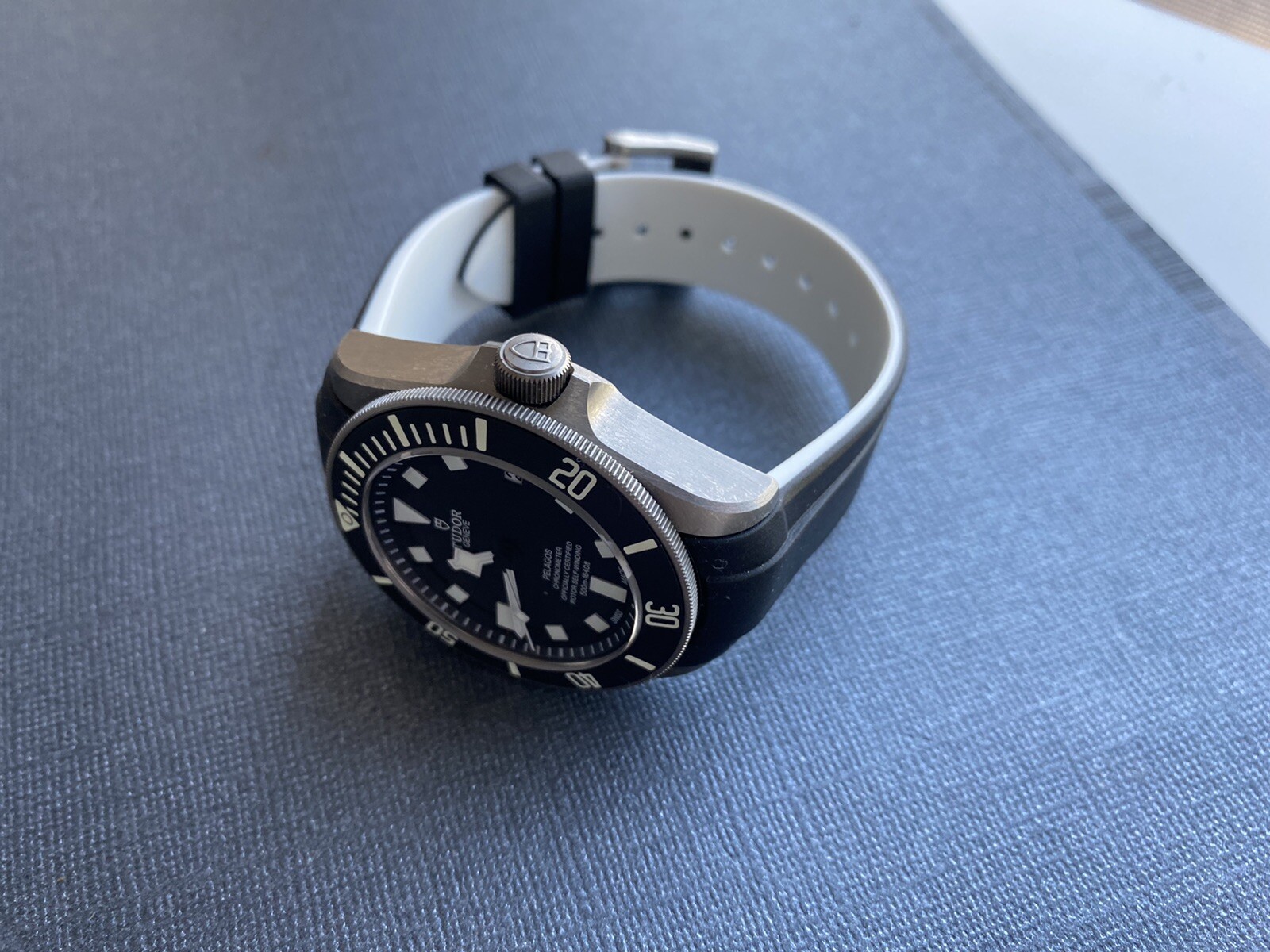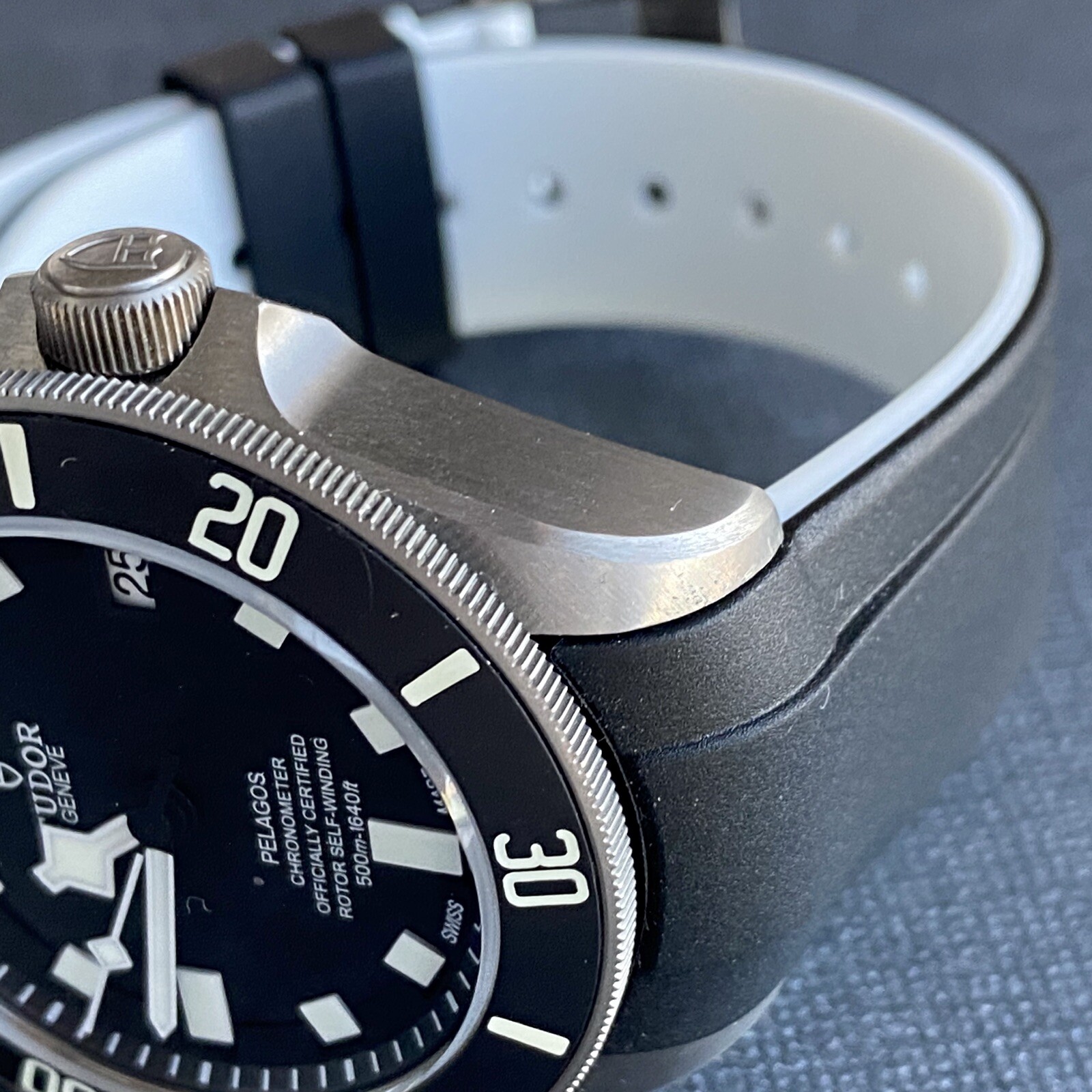 как выглядит 22mm BLACK/WHITE Vulcanized Curved rubber Strap 41mm TUDOR Pelagos Watch Band фото