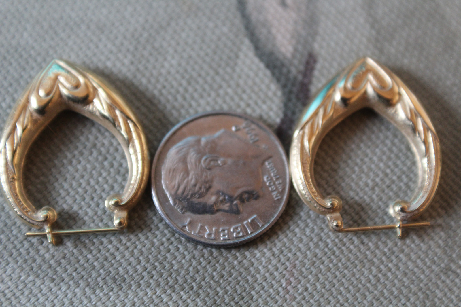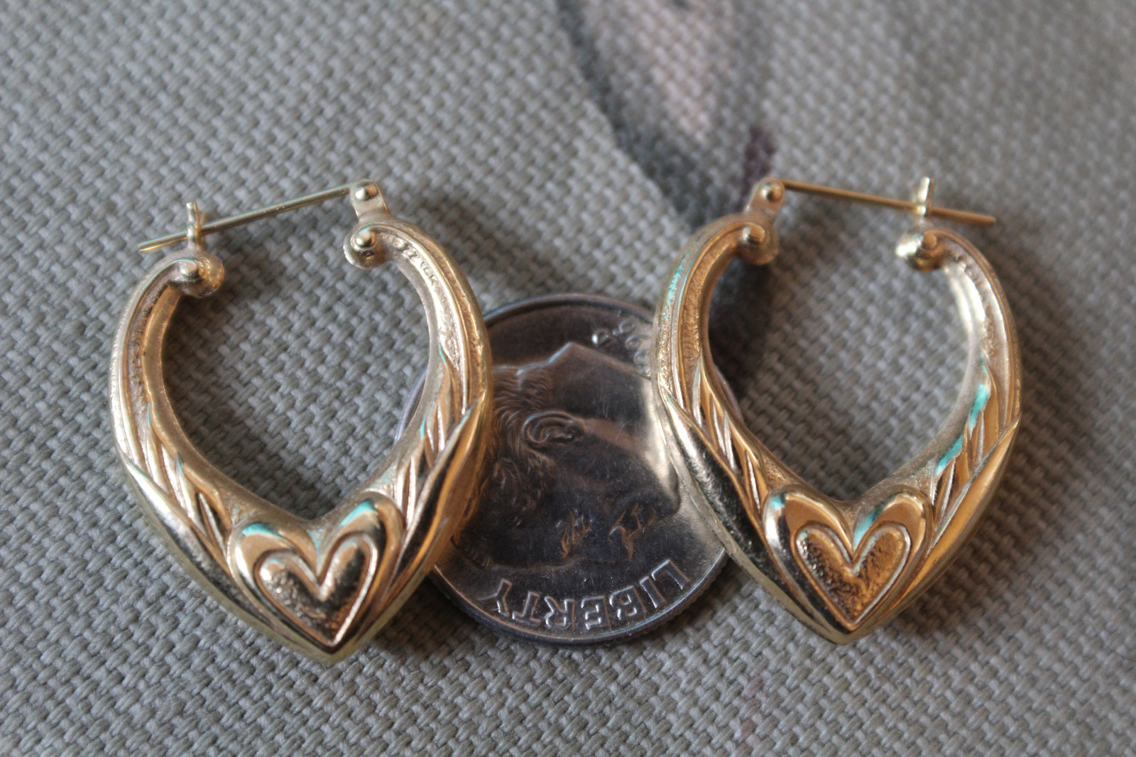 14K YELLOW GOLD 7/8 HEART DESIGN HOOP EARRINGS 1.8 GRAMS