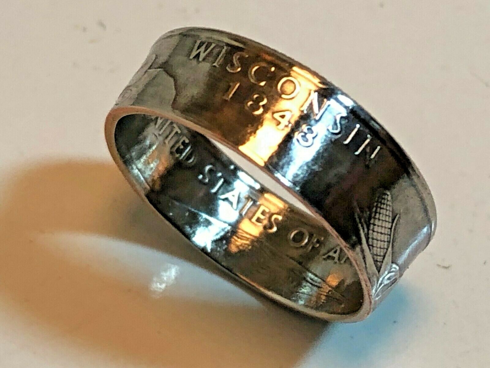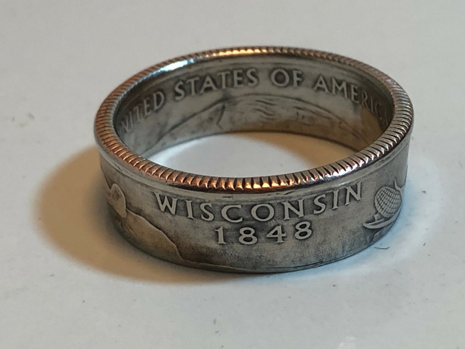 Wisconsin Coin Ring USA State Quarter 25 Cents Handmade Vintage Custom Jewelry