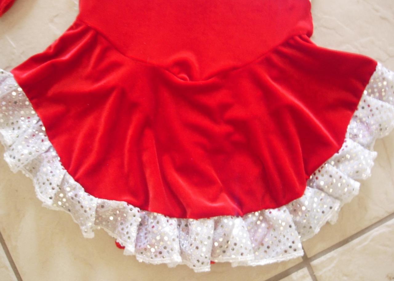 NEW Girls RED VELVET White SEQUIN SANTA Competition FIGURE ICE SKATING Dress