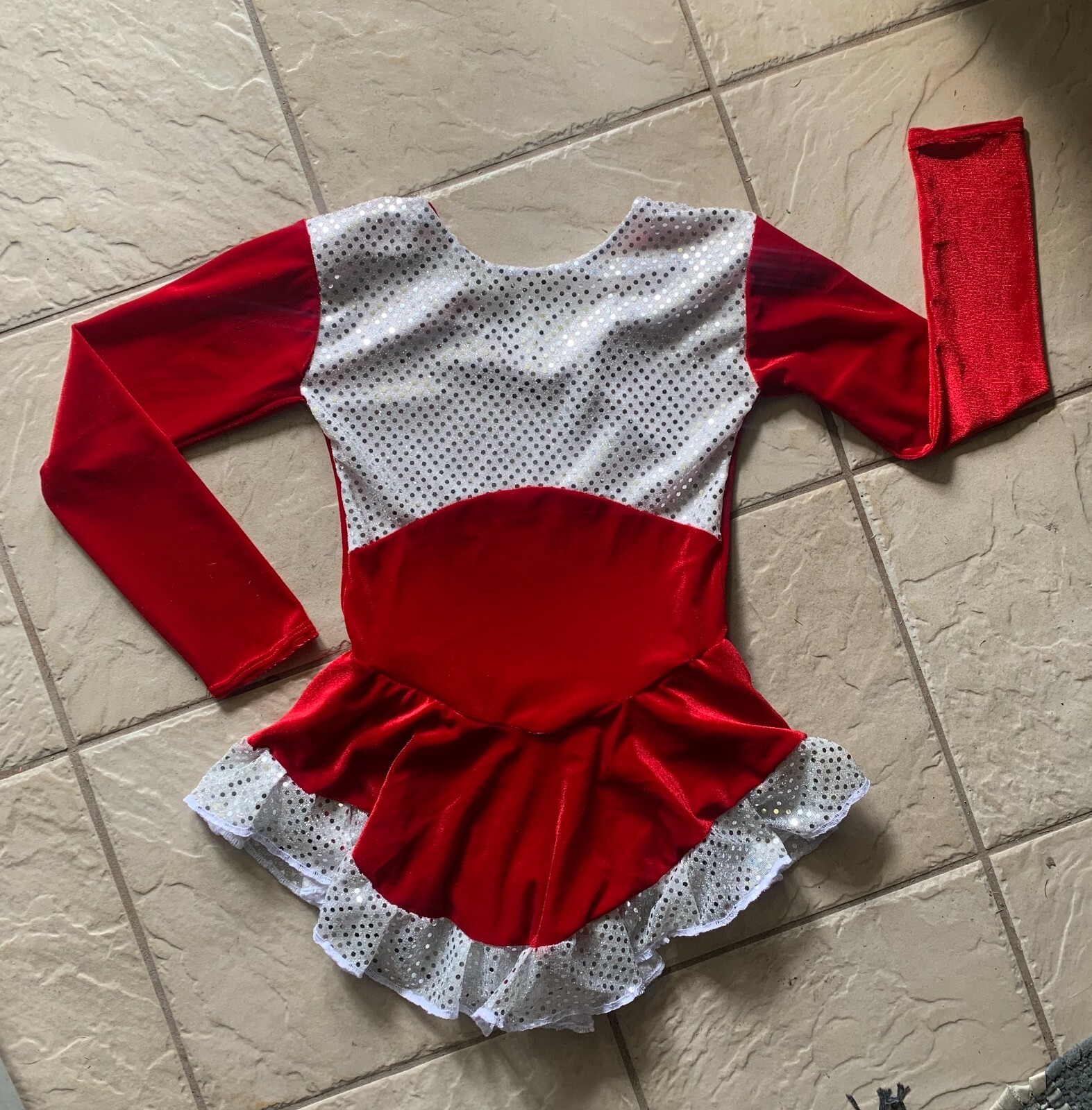 как выглядит NEW Girls RED VELVET White SEQUIN SANTA Competition FIGURE ICE SKATING Dress фото