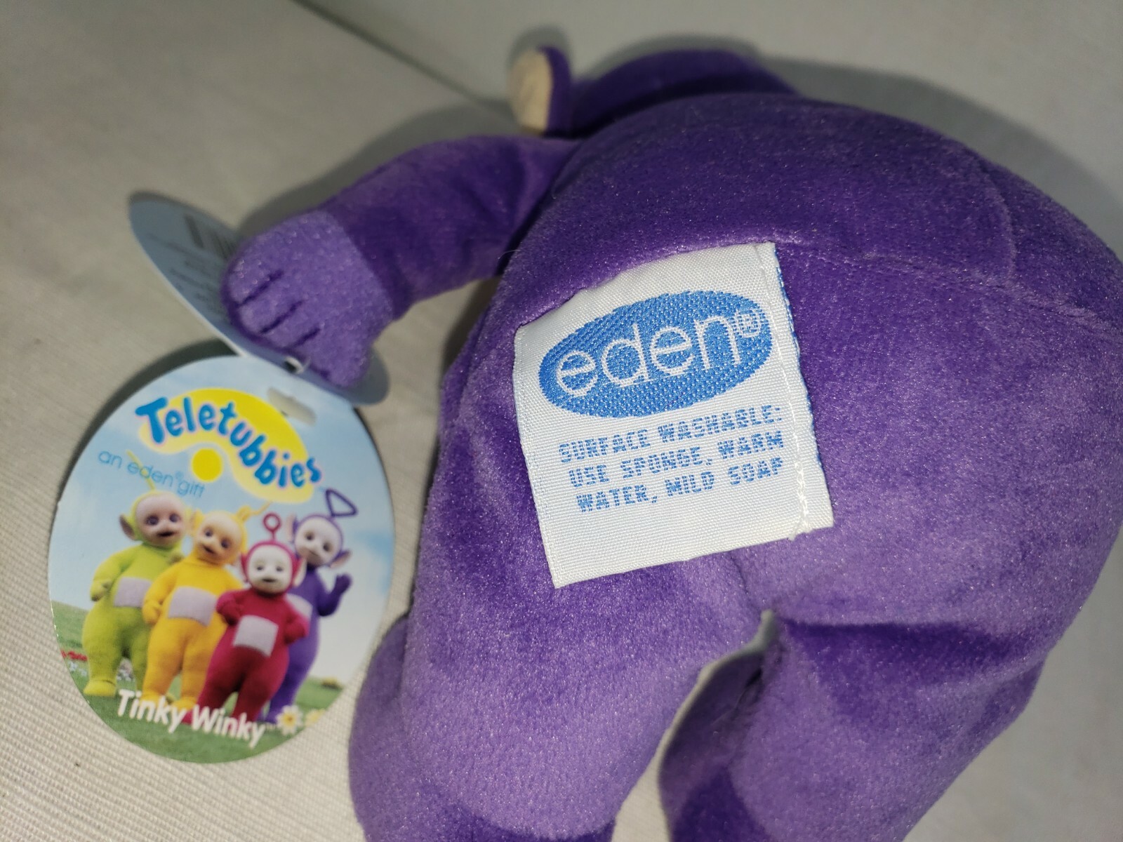 Vintage 1998 Eden Teletubbies TINKY WINKY 8 Plush Doll w/Tag, Flocked Face NWT