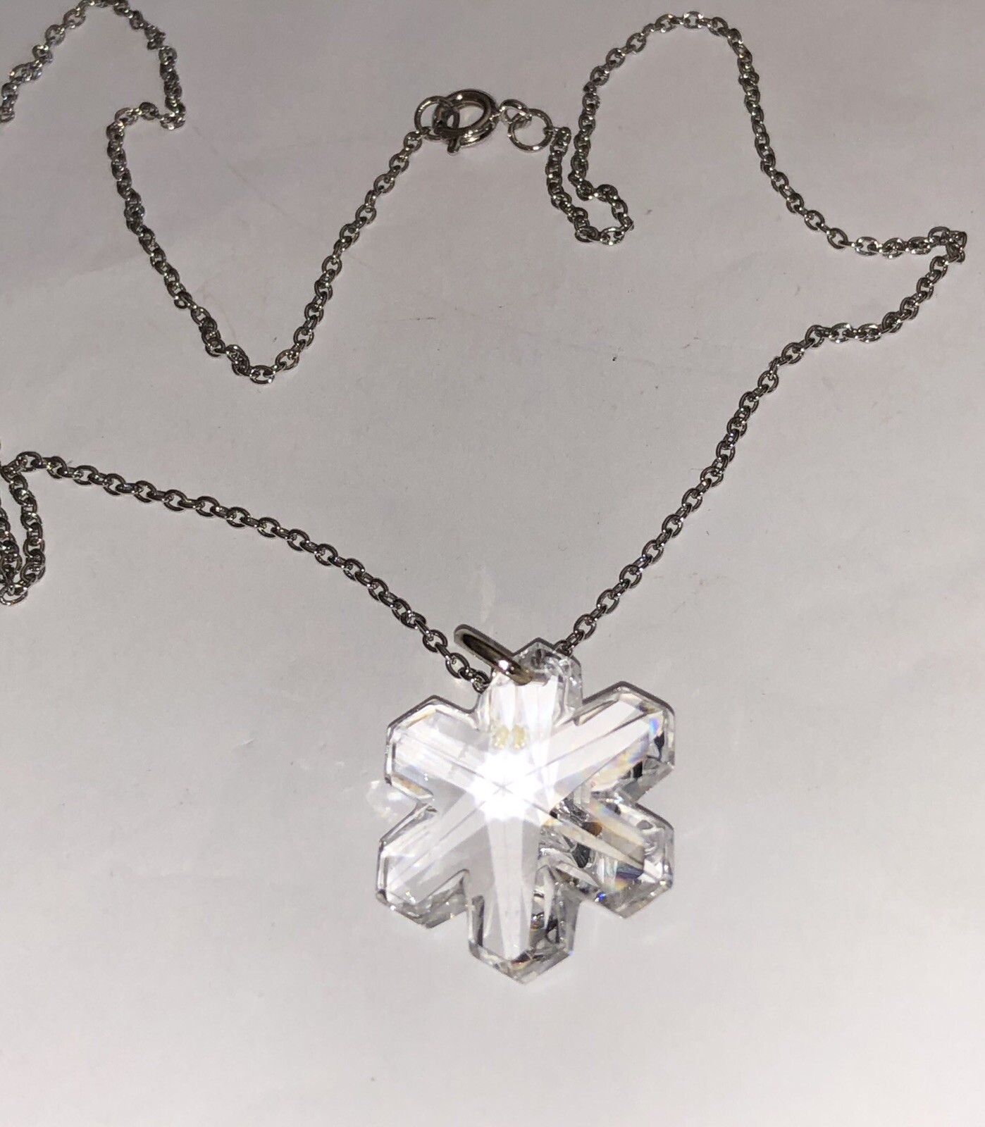 Pendant Made With SWAROVSKI Crystal Snowflake Parts Charm 18 Chain Christmas