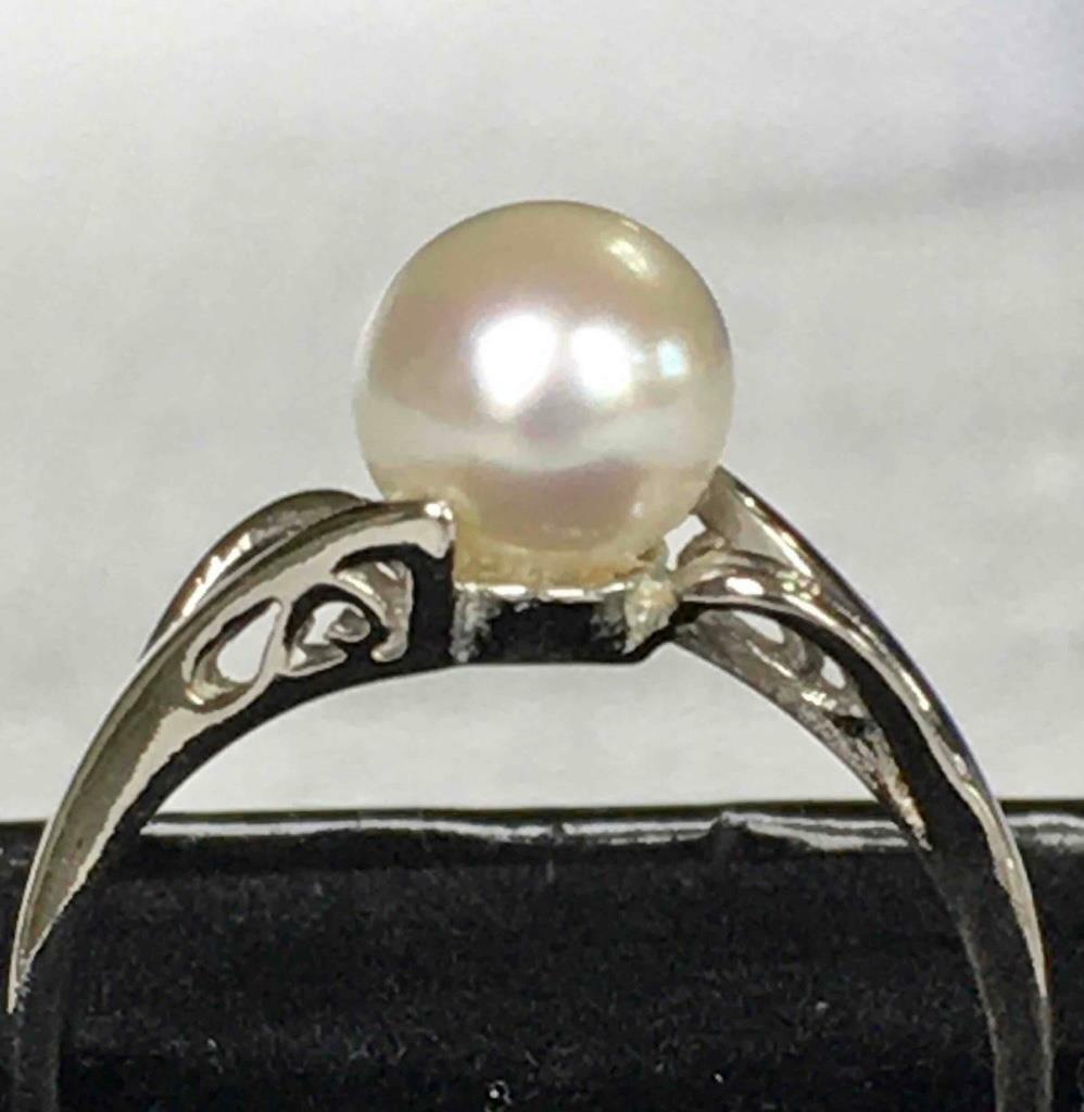 как выглядит Brilliant Faux Pearl in this Sterling Silver Ring, Size 8 фото