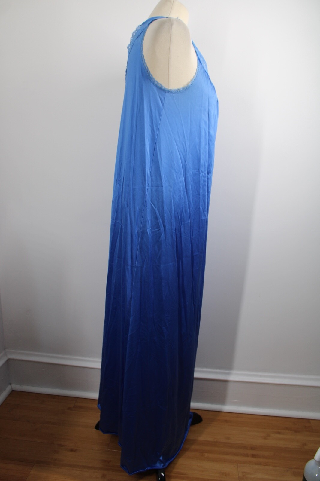 Vtg Vanity Fair S Blue Nylon Lace Sleeveless Maxi Slip Night Gown Lingerie Dress