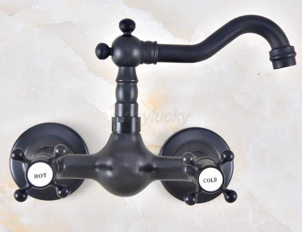 Black Oil Rubbed Brass Kitchen Faucet Bathroom Sink Mixer Tap Wall Mount