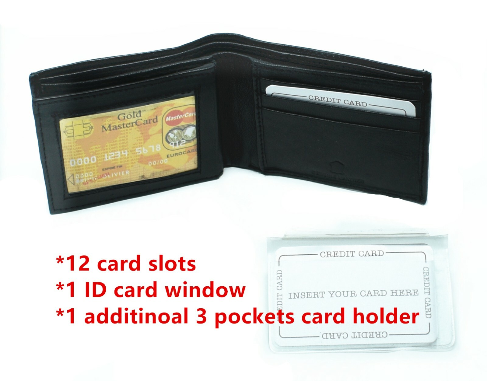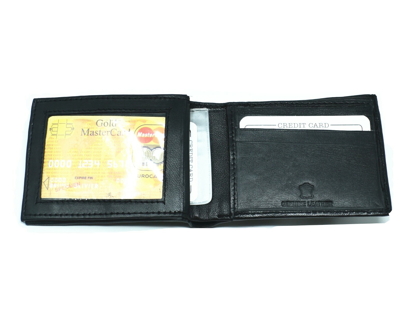 Men Black Genuine Leather Bifold Wallet ID Window Credit Card Holder Slots Purse