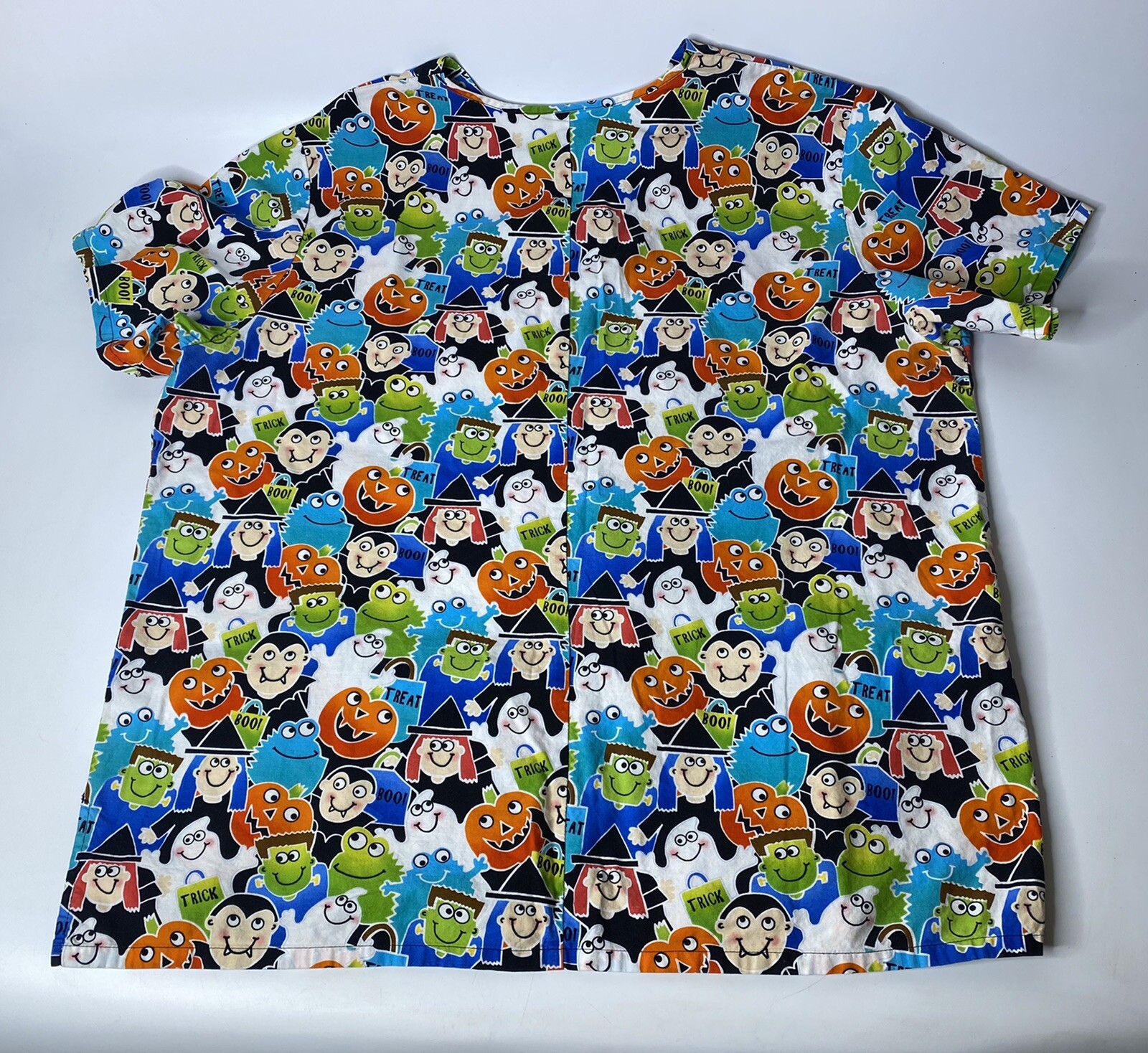 Cherokee Halloween Print Pumpkin Trick Or Treat Grey Scrub Top Women s XL