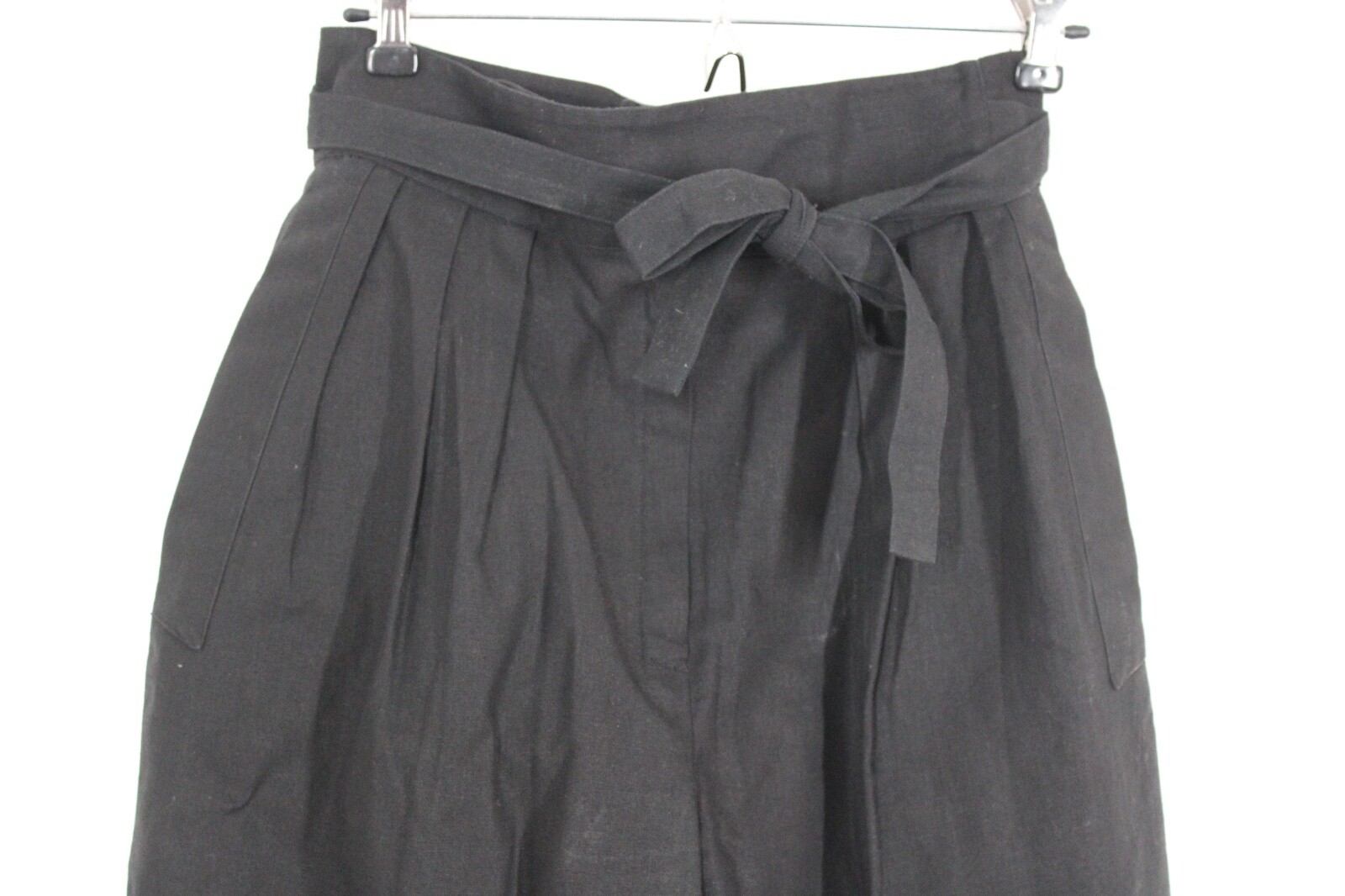 как выглядит Vtg Betty Hanson 10 Black High Waist Pleated Belted Linen Cotton Trousers Pants фото