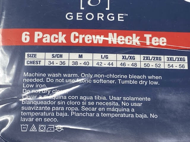 NEW George Men s Crew T-Shirts 6-Pack Tag Free Size Small, BLACK/ GREY