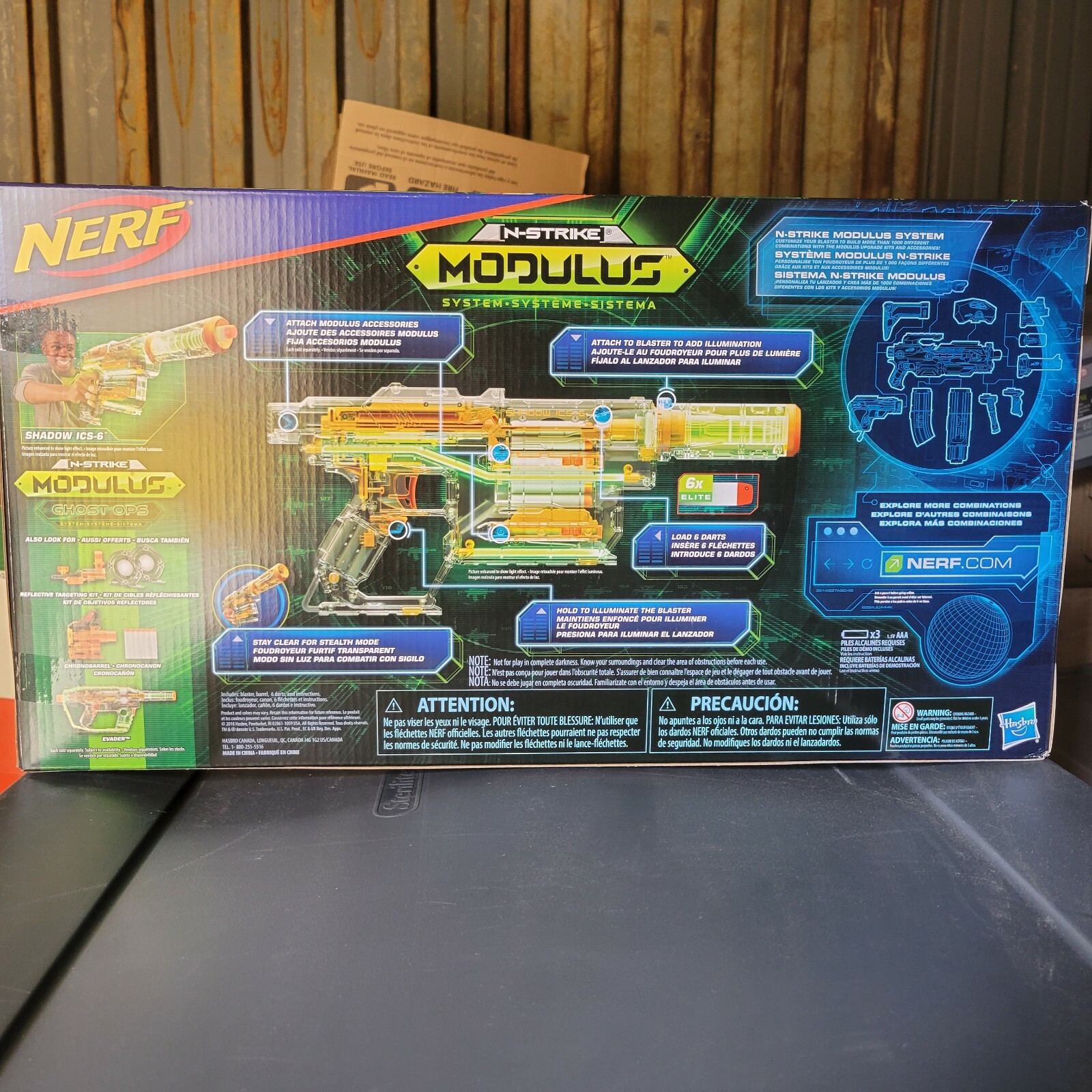 как выглядит Hasbro Nerf N-Strike Modulus Ghost Ops System Shadow ICS-6 Blaster Barrel Darts фото