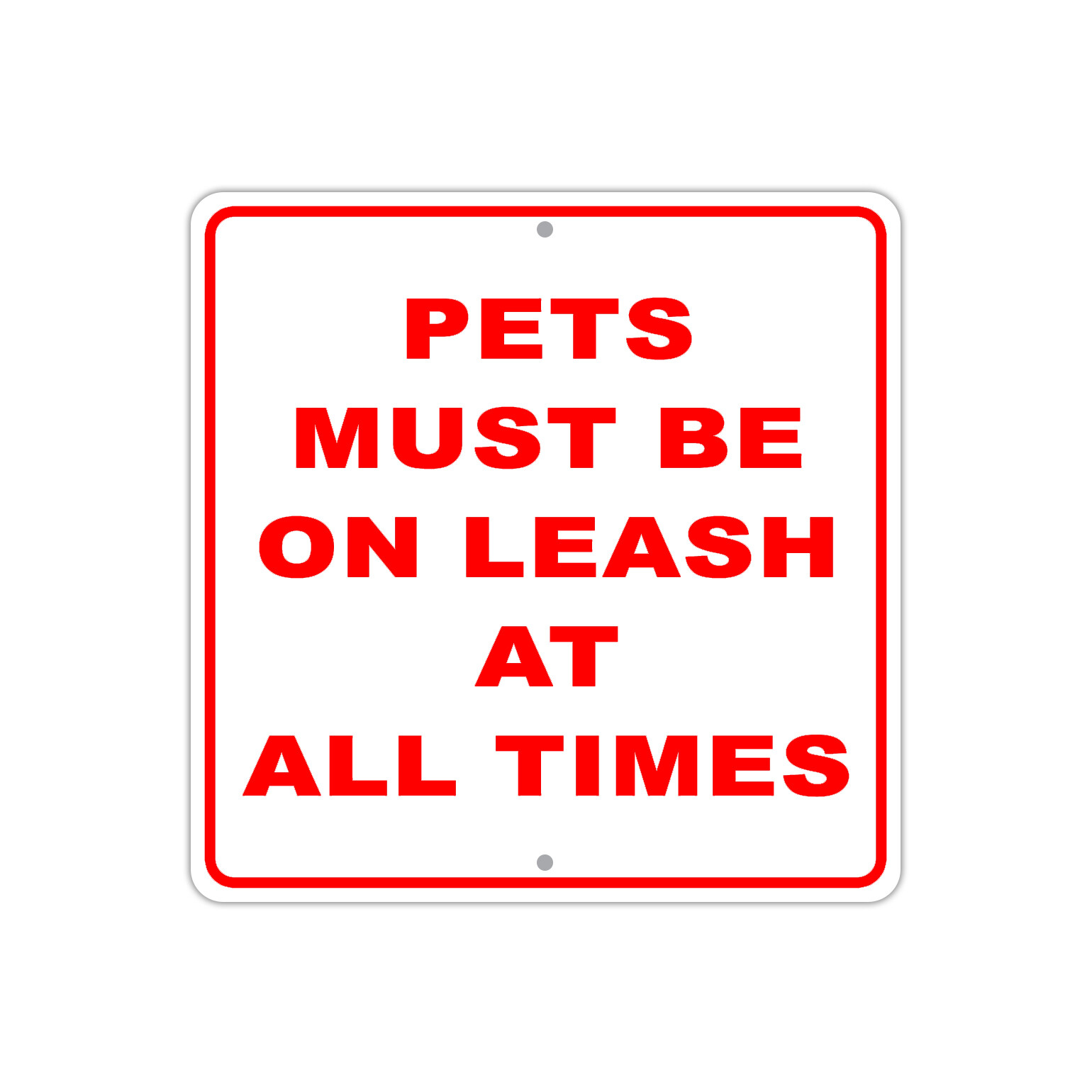 Pets Must Be On Leash At All Times 12x12 Portable Novelty Aluminum Metal Sign
