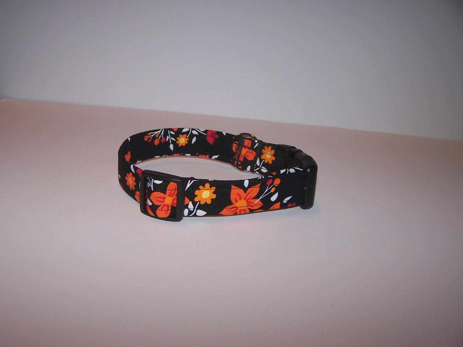 Wet Nose Designs Fall Frolic Dog Collar Bright Autumn Flowers Black Harvest