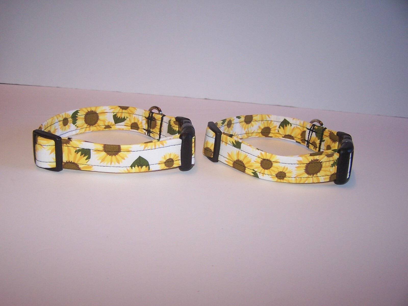 Wet Nose Designs Sunshine Day Dog Collar Sunflowers on White Sunflower Fall