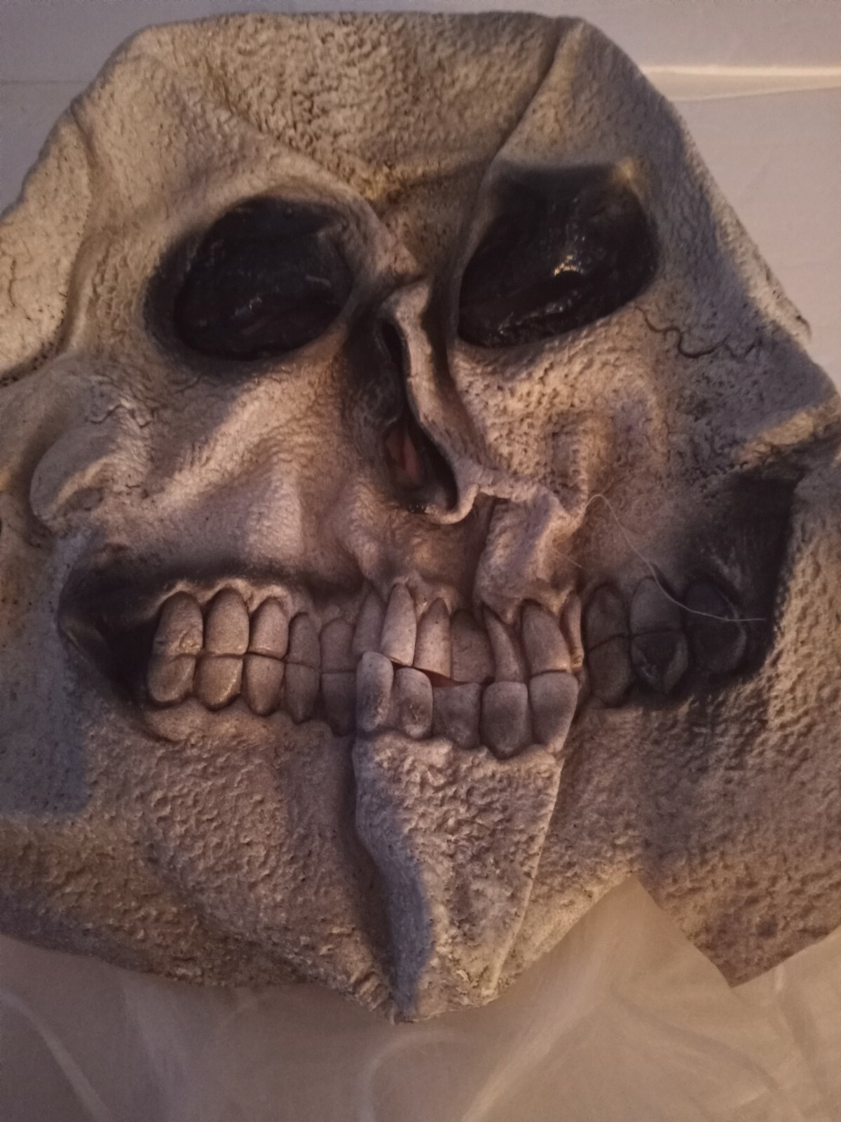 как выглядит Scary Skull Mask With Attached White Hair фото