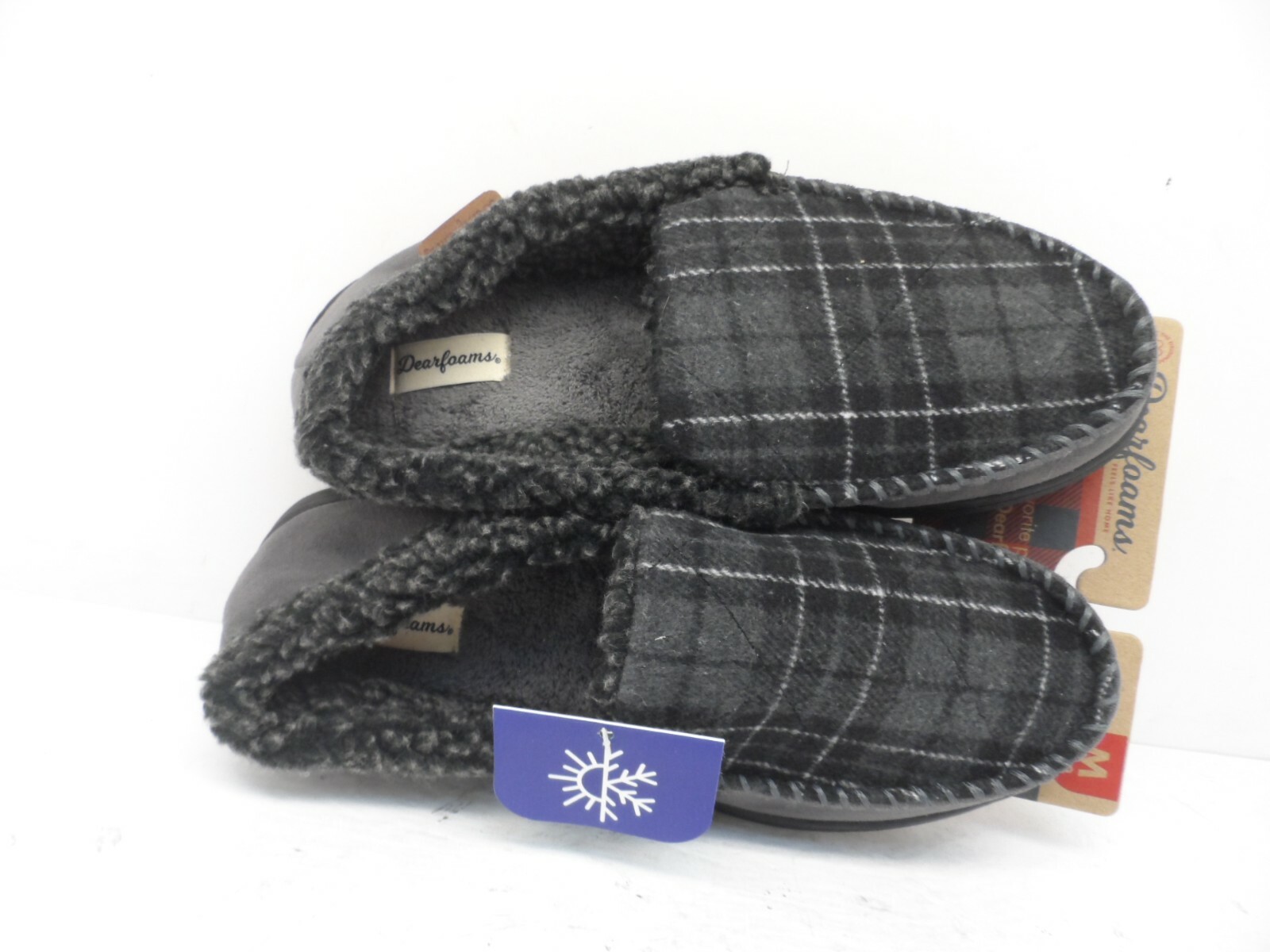 Dearfoams Men's Memory Foam Slippers Black-Plaid Size 9-10M