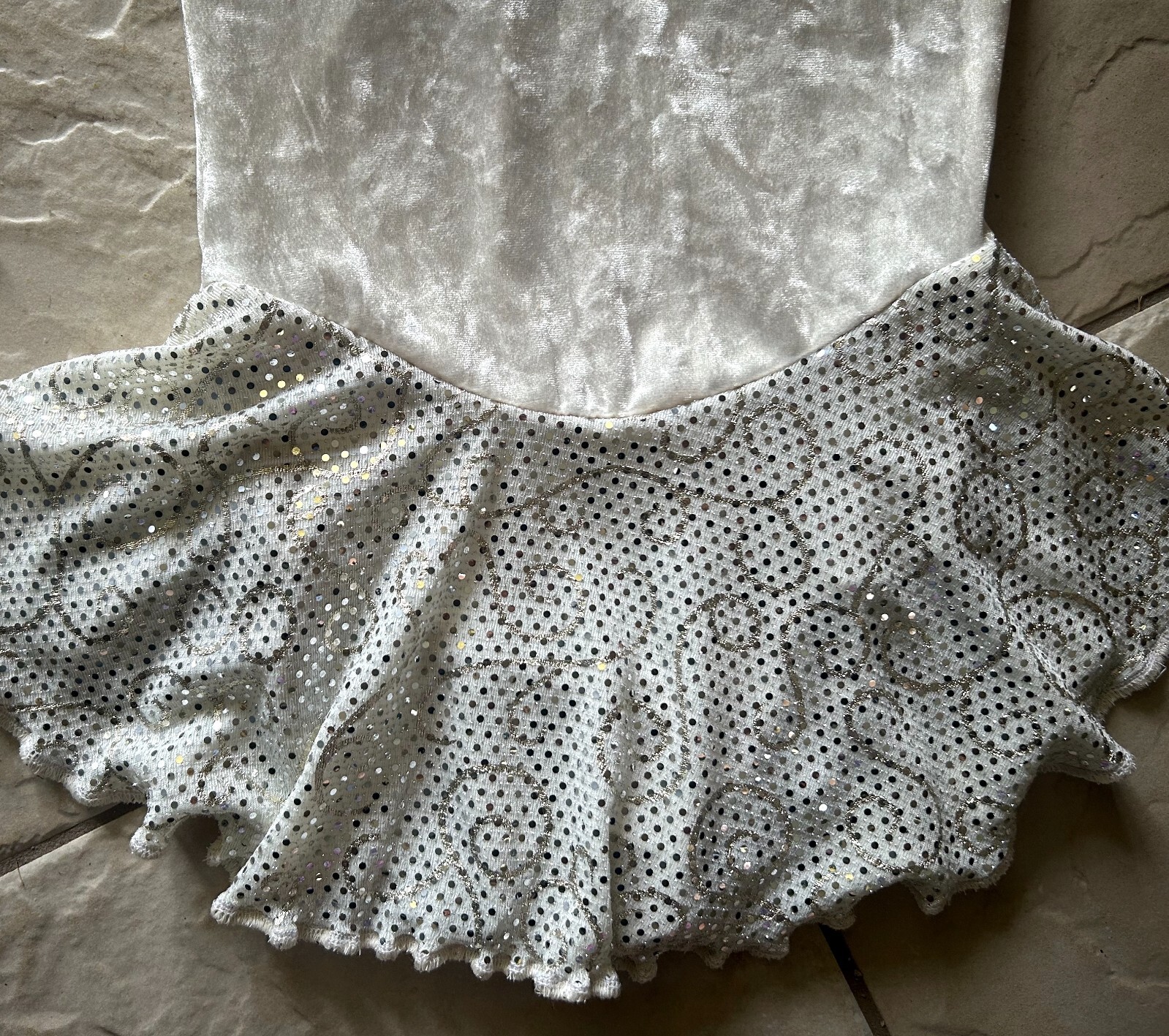 как выглядит NEW Girls CREAM Velvet SEQUIN Swirl GEMS Competition FIGURE ICE SKATING DRESS фото