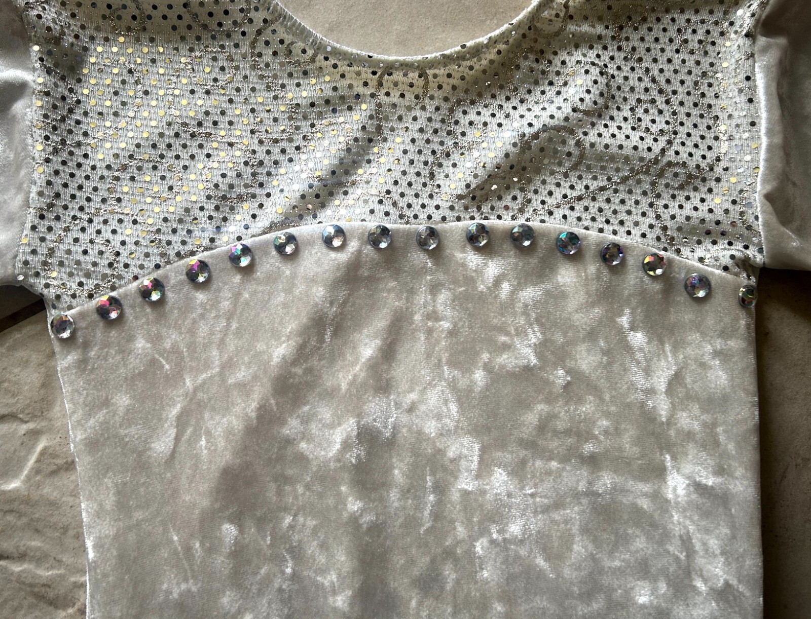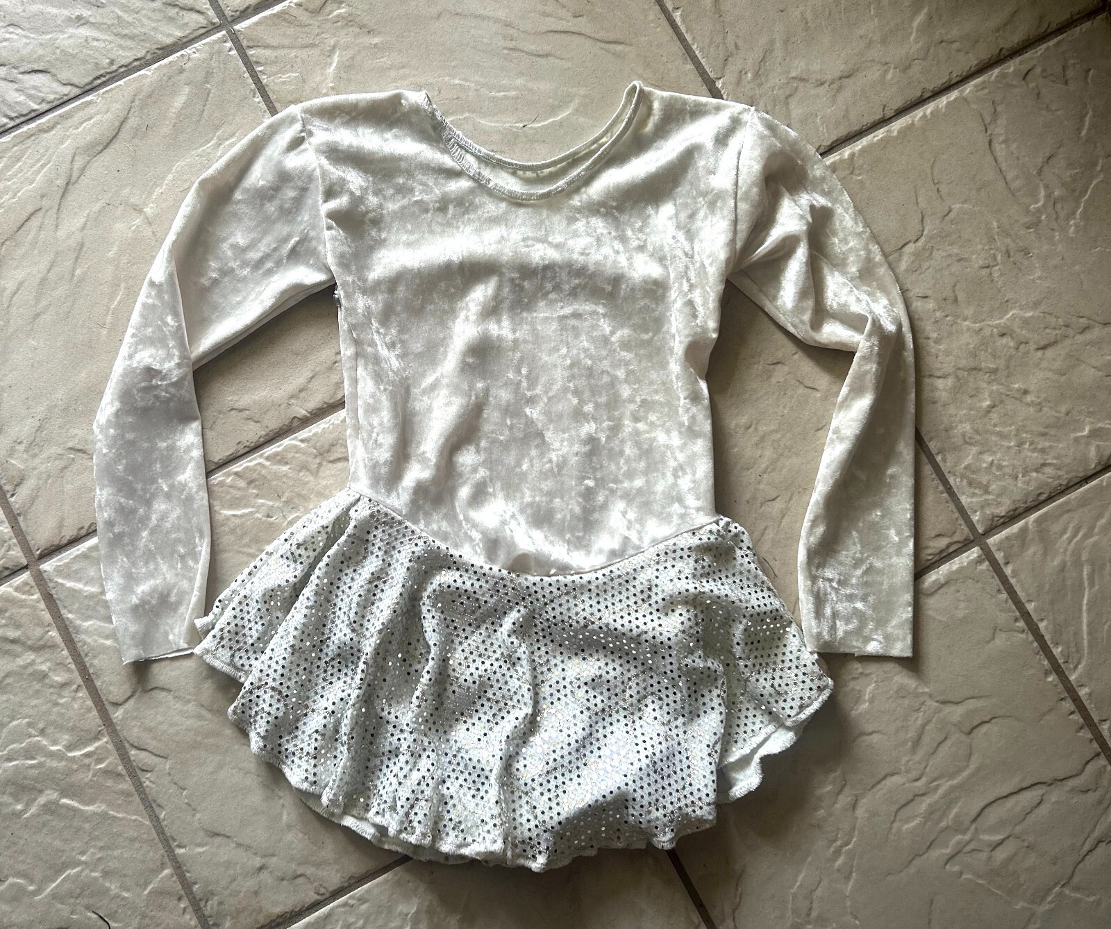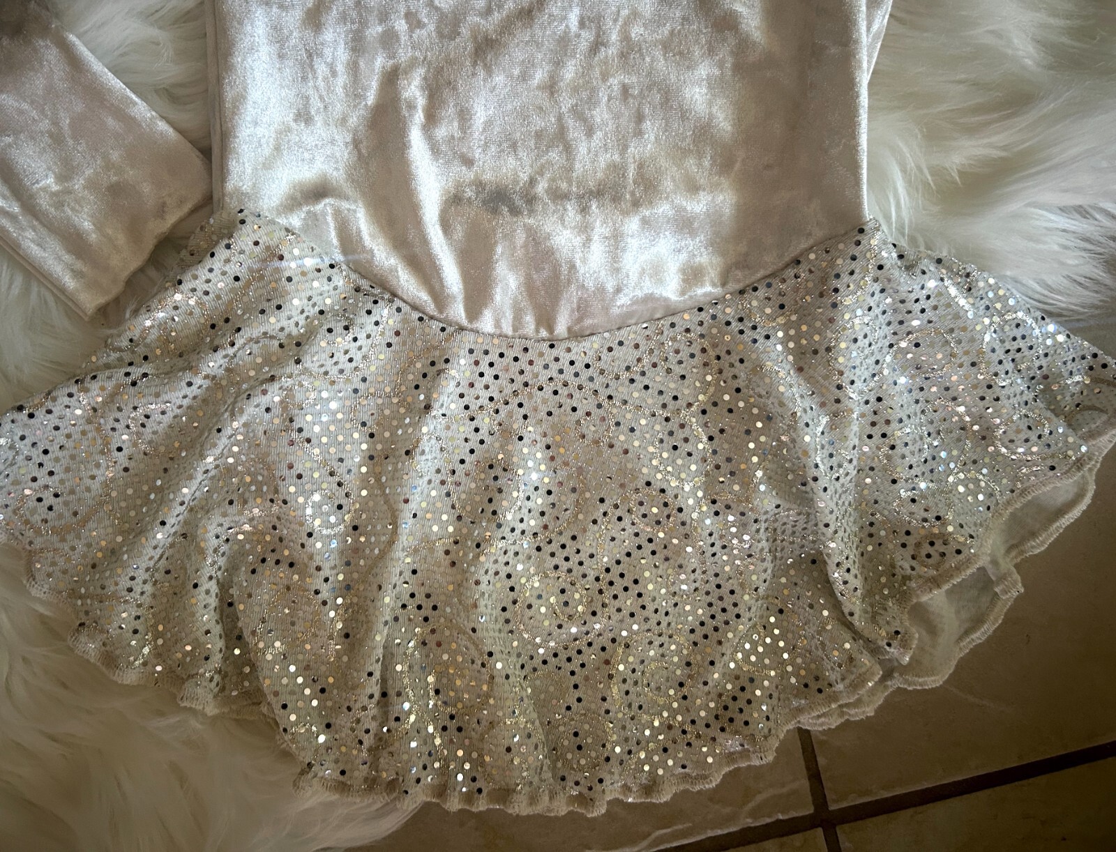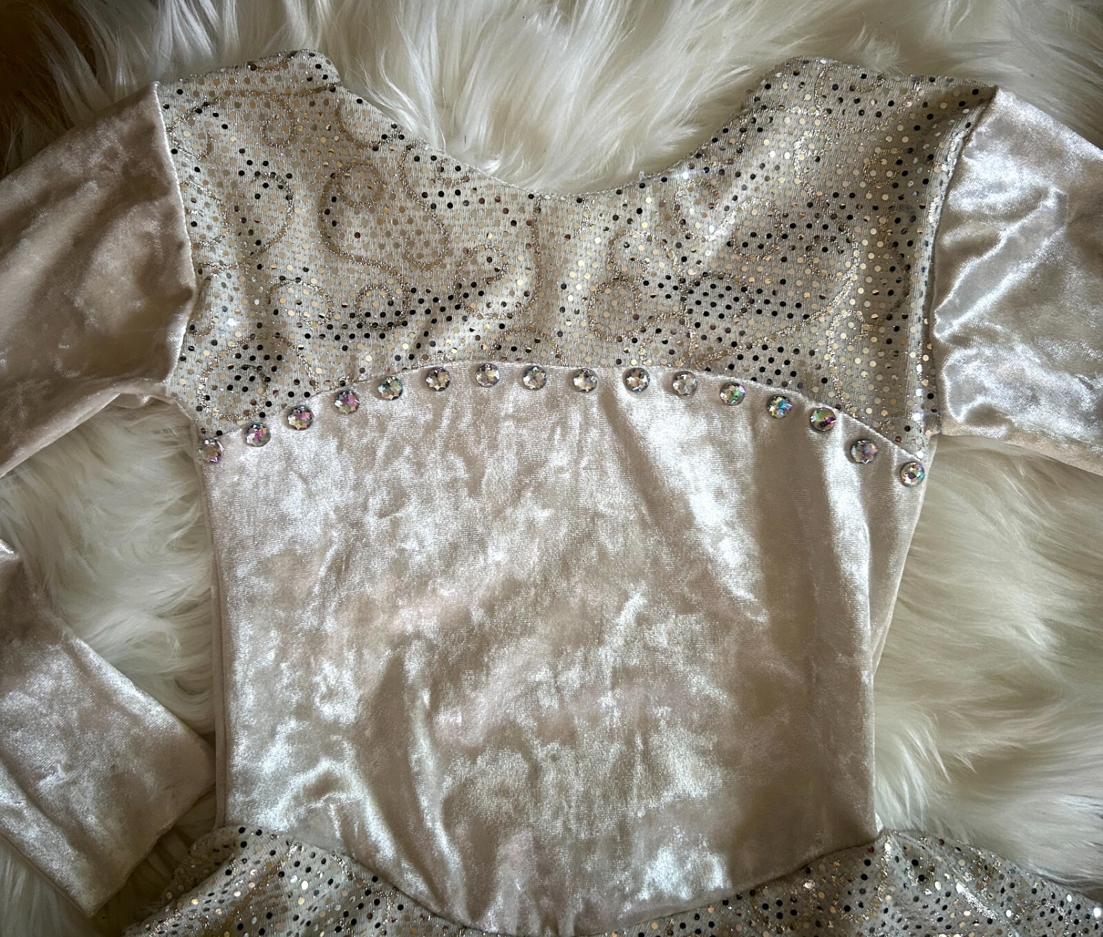 NEW Girls CREAM Velvet SEQUIN Swirl GEMS Competition FIGURE ICE SKATING DRESS