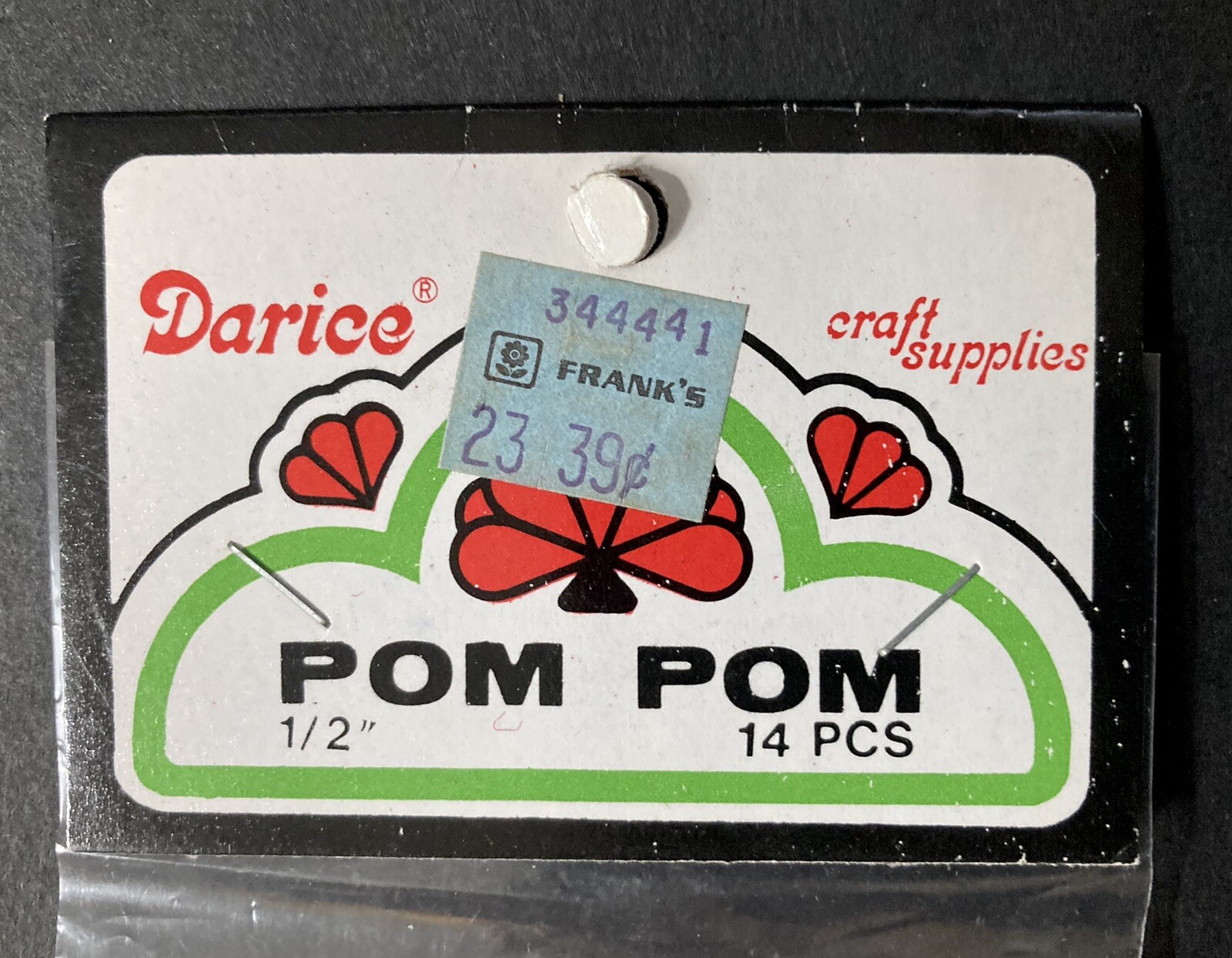 Vintage Darice Craft Supplies 14 3/4 14 1/2 Red Pom Pom s Christmas Holiday