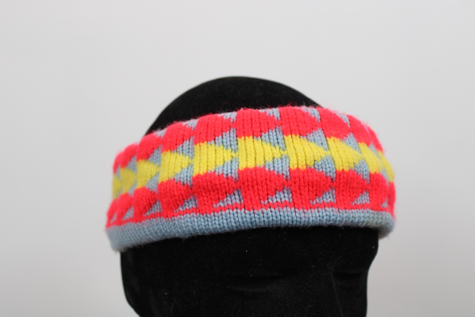 как выглядит Vtg Ewe First Neon Geometric Knit Wool Headband Hat фото