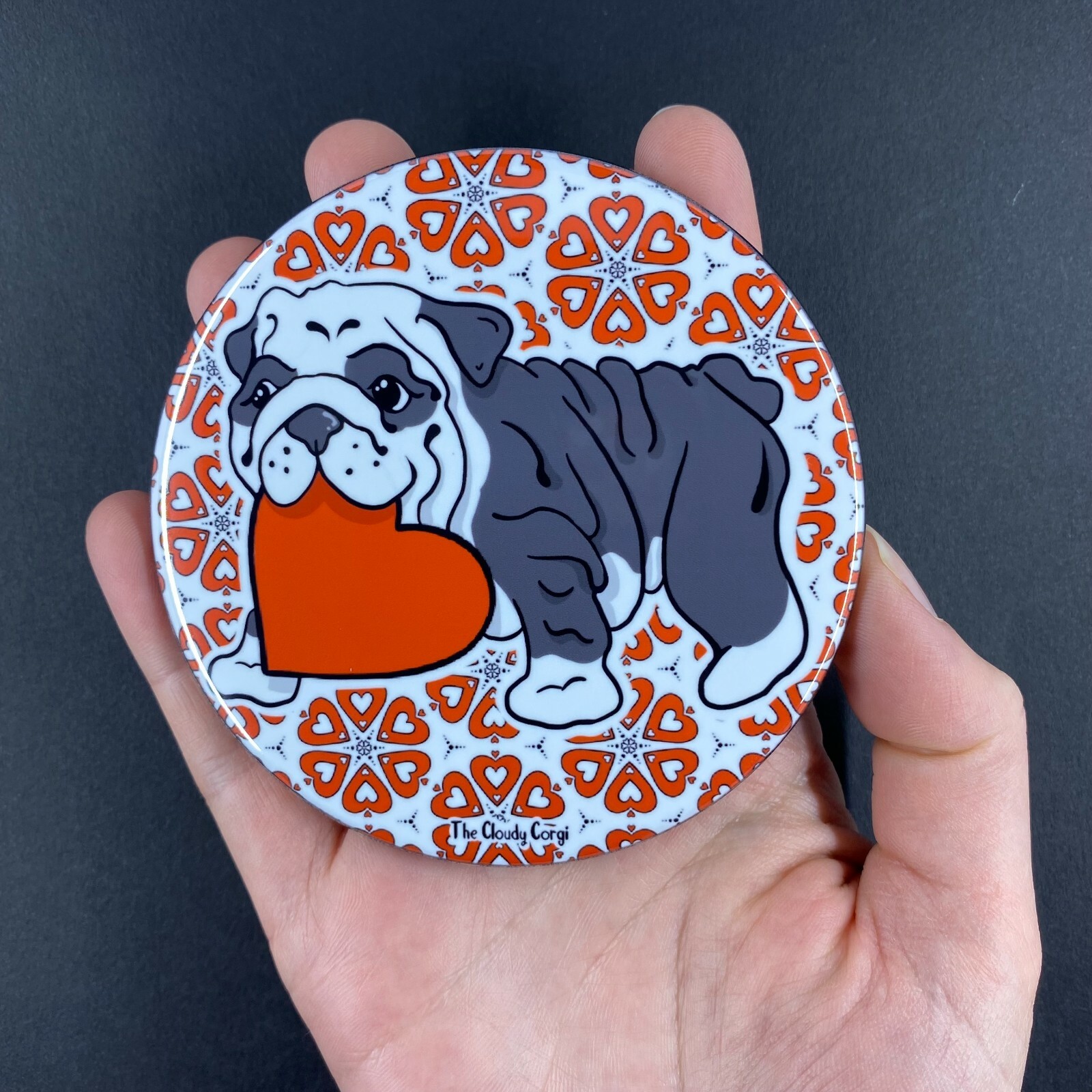 Black and White English Bulldog Valentines day Magnet Handmade Holiday Dog Gift