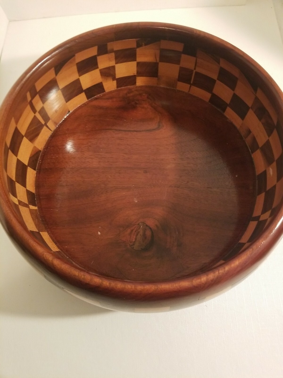 • VINTAGE HAND MADE MULTI WOOD TURNED INLAID ART BOWL signed T.H. LH