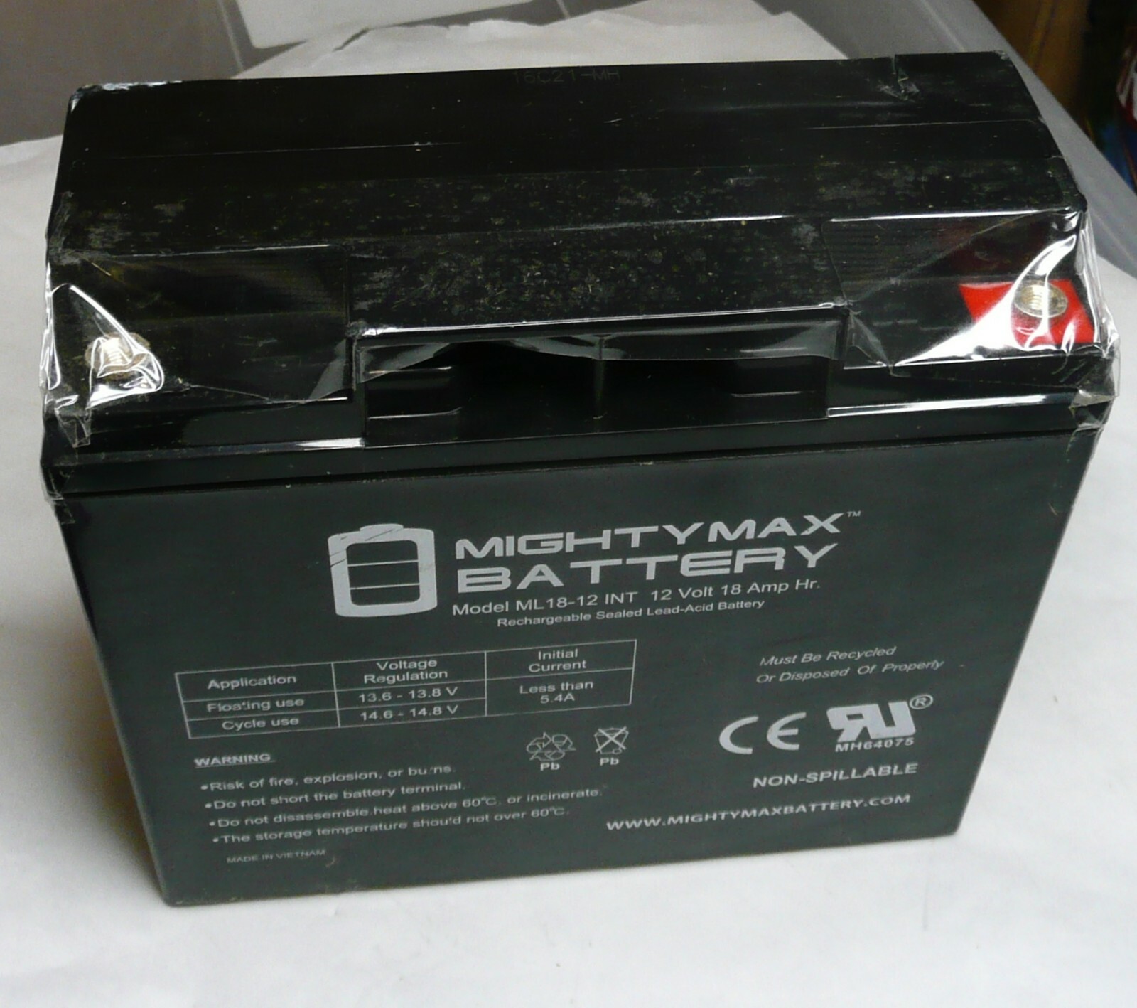 Mighty Max ML18-12INT, 12 V 18 Ah Rechargeable Sealed Lead Acid Battery no box