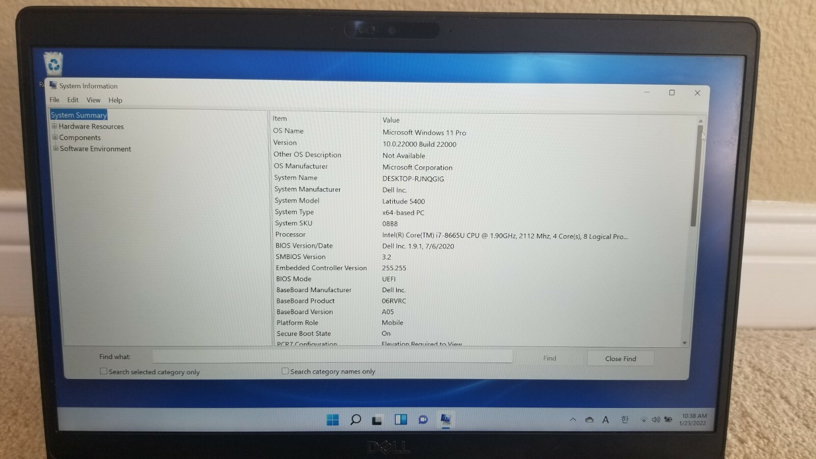 DELL LATITUDE 5400 FHD TOUCH i7-8665u 1.90GHz 256GB 8GB Black W10Pro