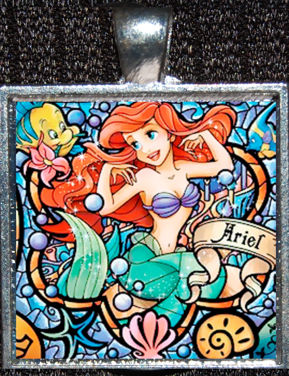 Princess Ariel Little Mermaid Flounder Disney Silver Pendant Necklace Jewelry