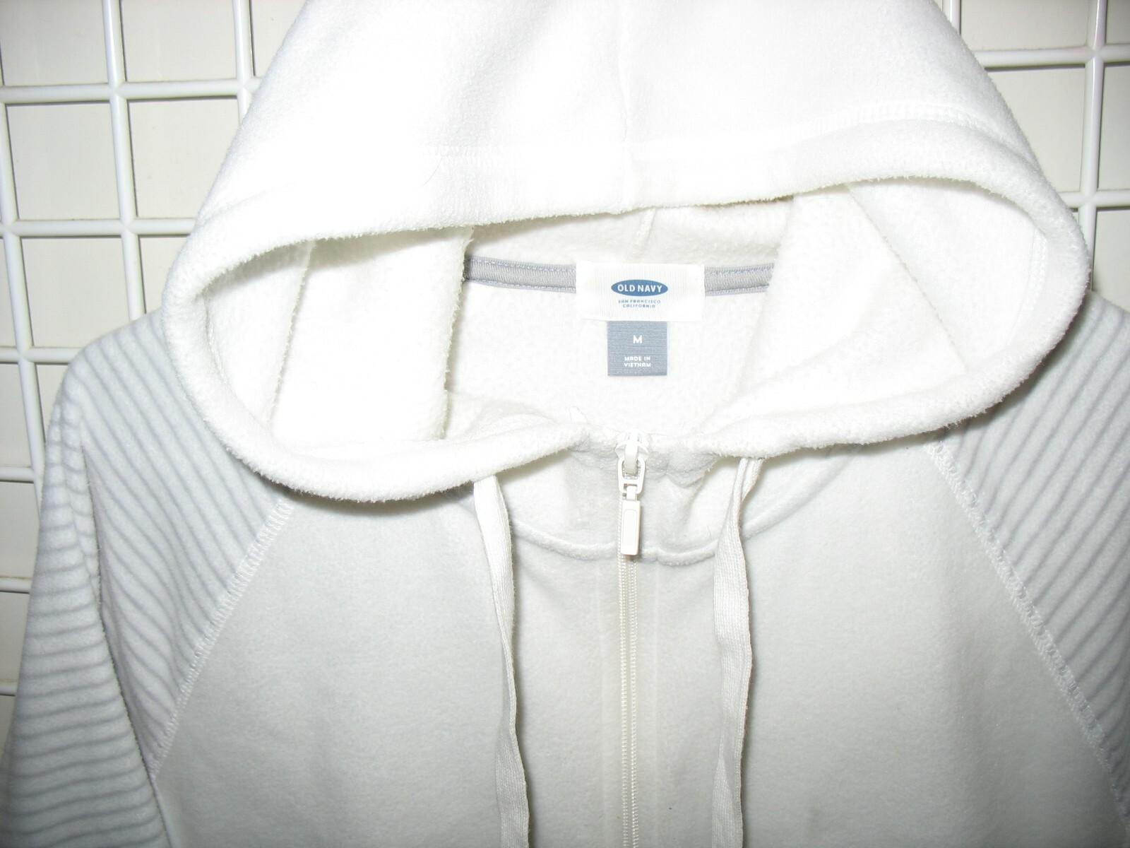 как выглядит OLD NAVY - M - WHITE / GRAY - ZIPPER FRONT SOFT PLUSH HOODIE фото