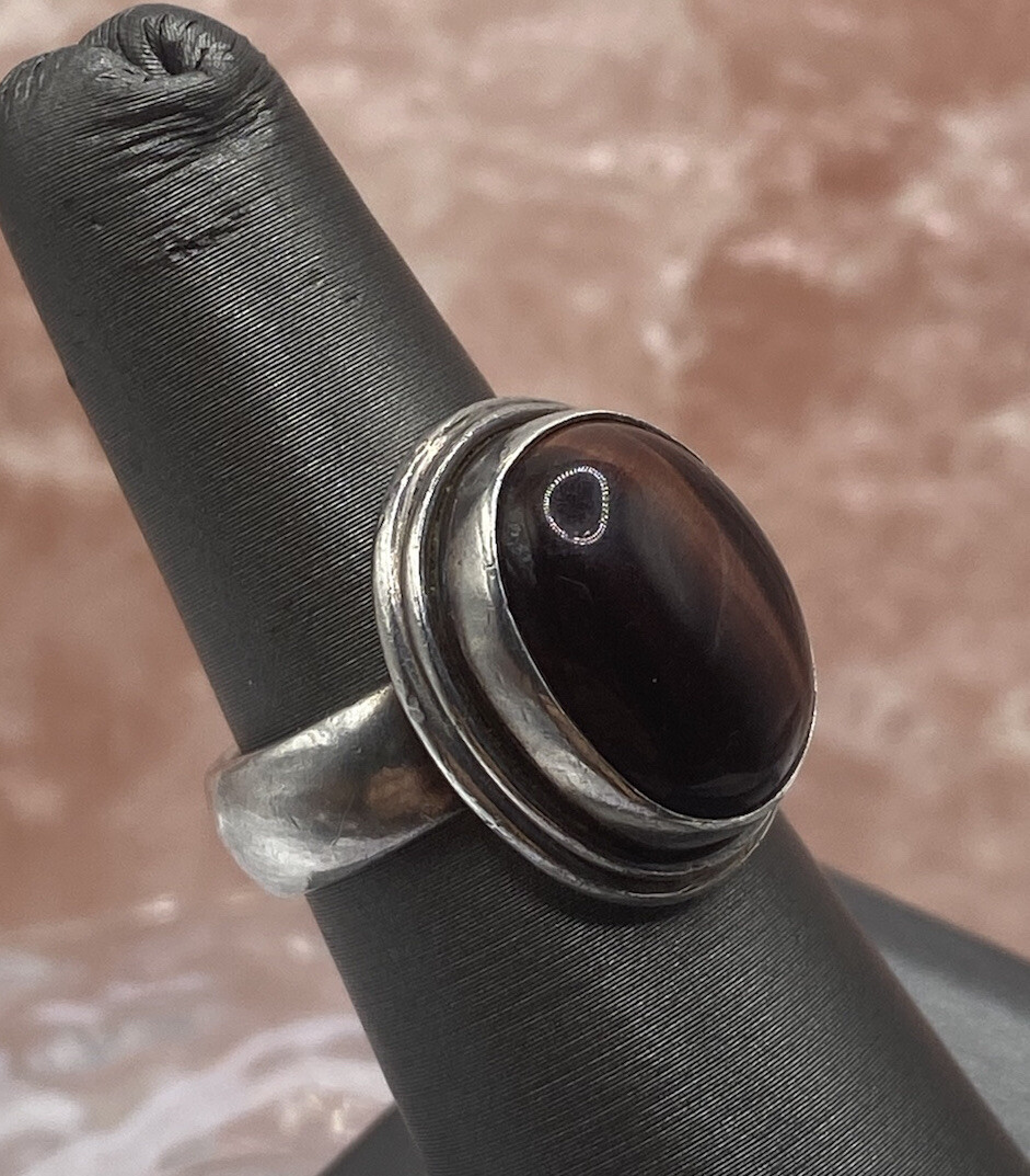 ARTISAN STERLING SILVER AND TIGER'S EYE STONE RING SIZE 6.5