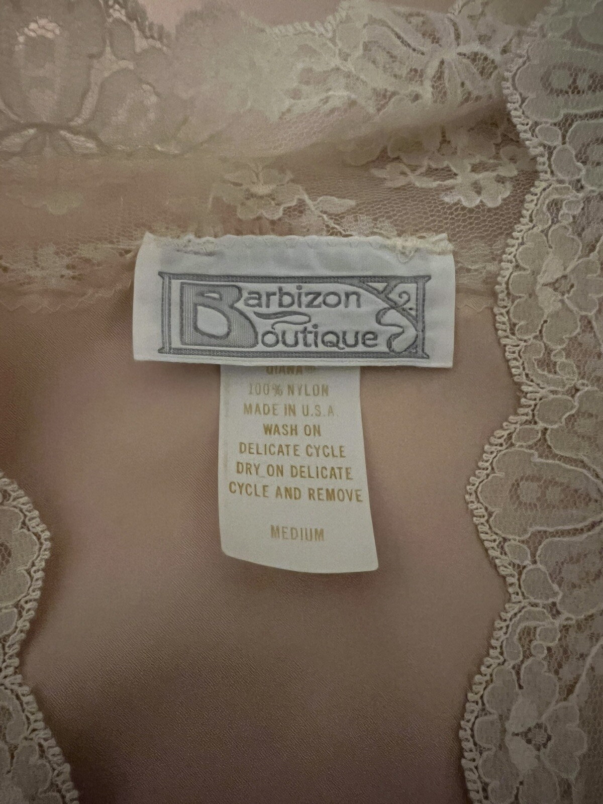 Vintage Barbizon Boutique 1980s Pink White Lace Nightgown Nylon Satin Size M