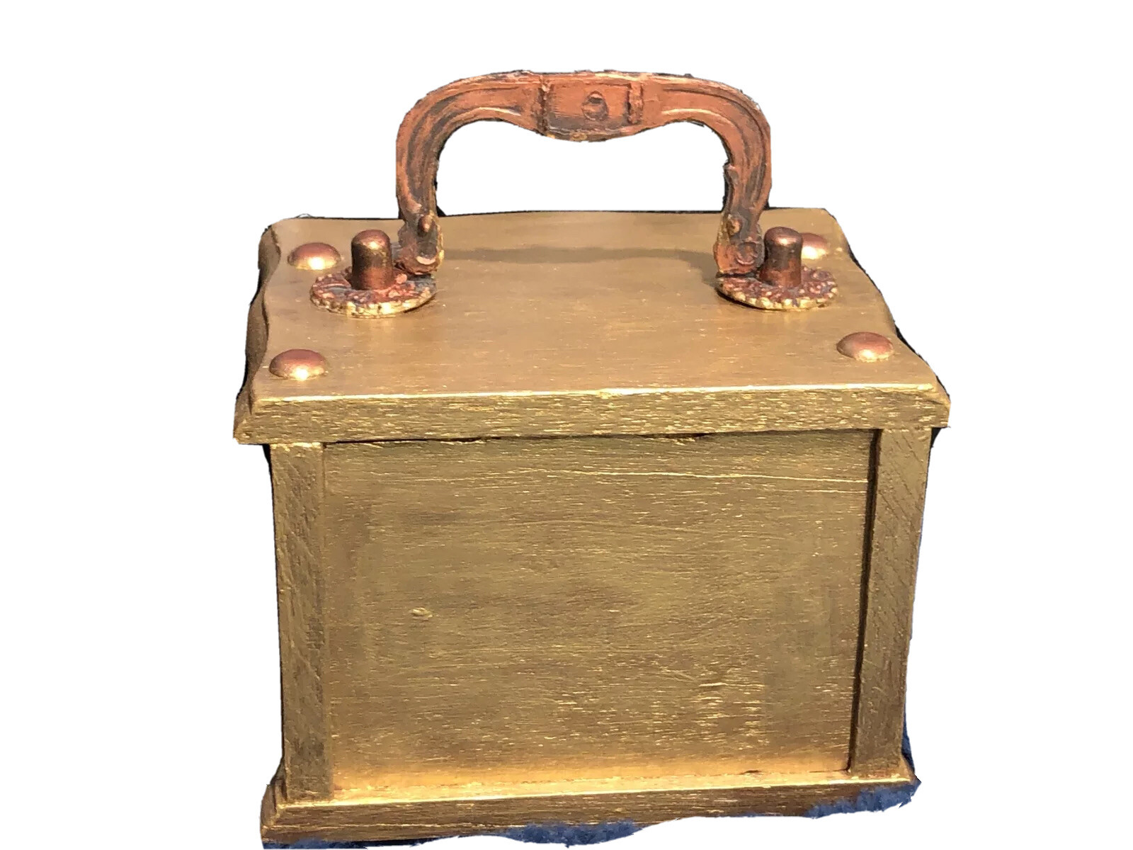 Vintage Wood Cork 8 Drink Coasters With Storage Box Gold Finish Mid Century PO