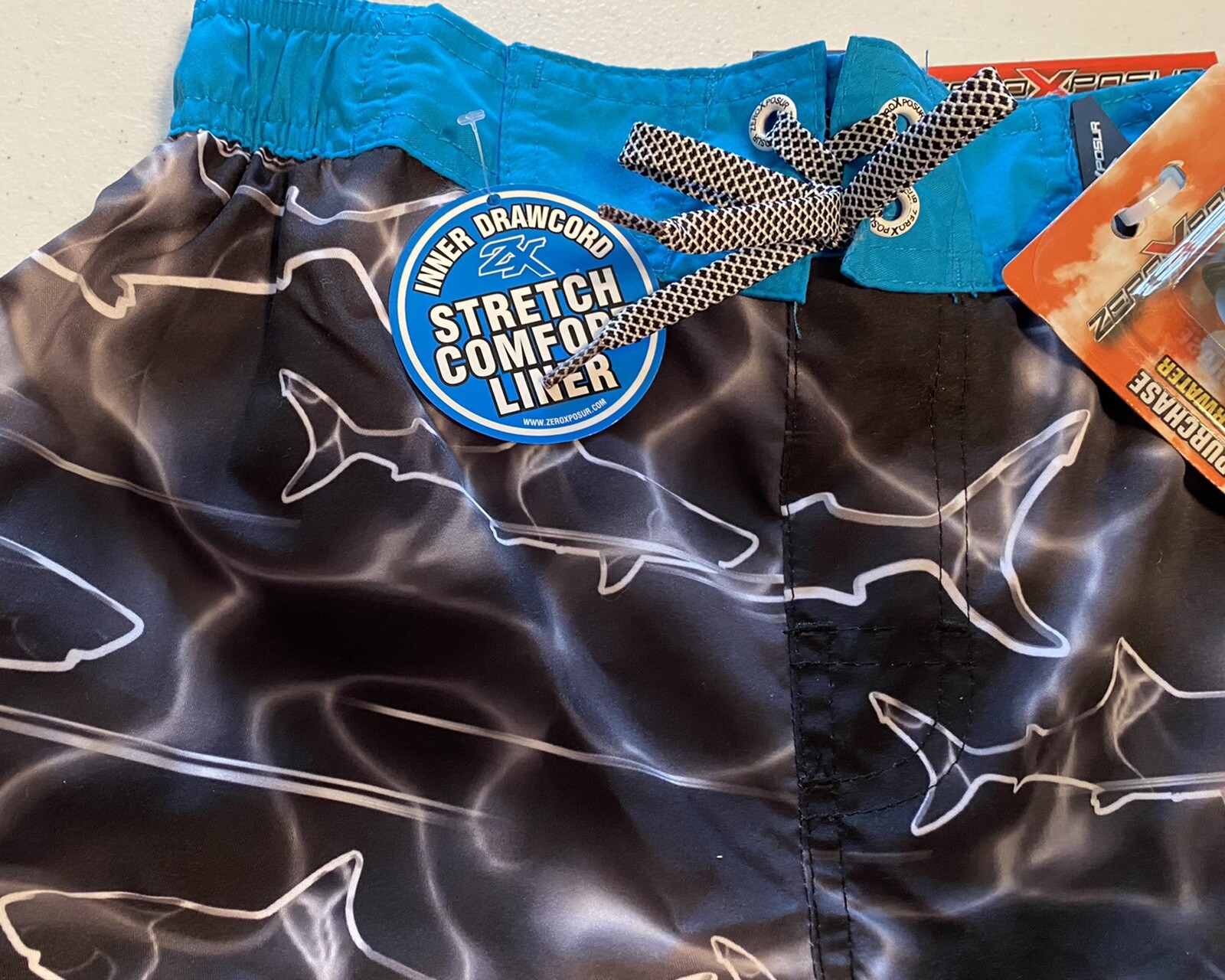 как выглядит ZeroXposur Boys Swim Trunks Boardshorts Swimwear Size M 10-12 Black Sharks NWT фото