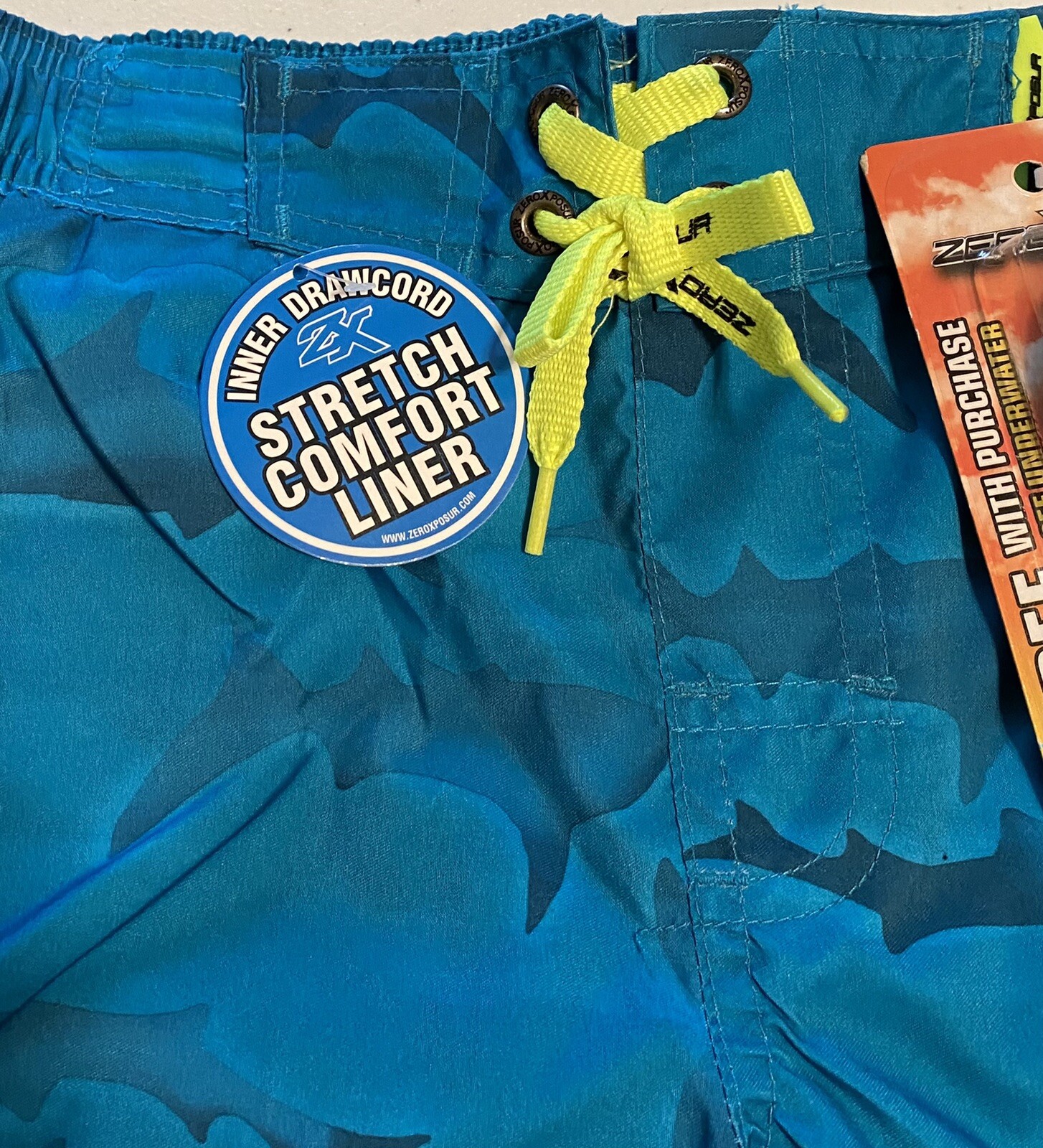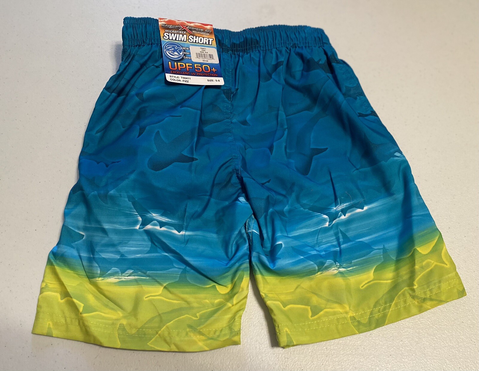 как выглядит ZeroXposur Boys Swim Trunks Boardshorts Swimwear Size L 14-16 TEAL Sharks NWT фото