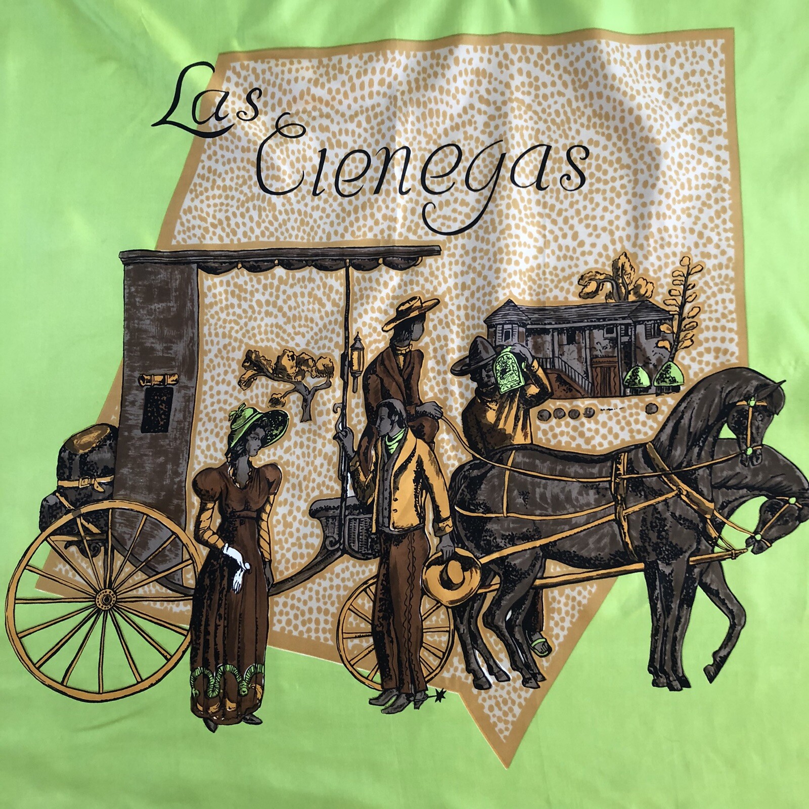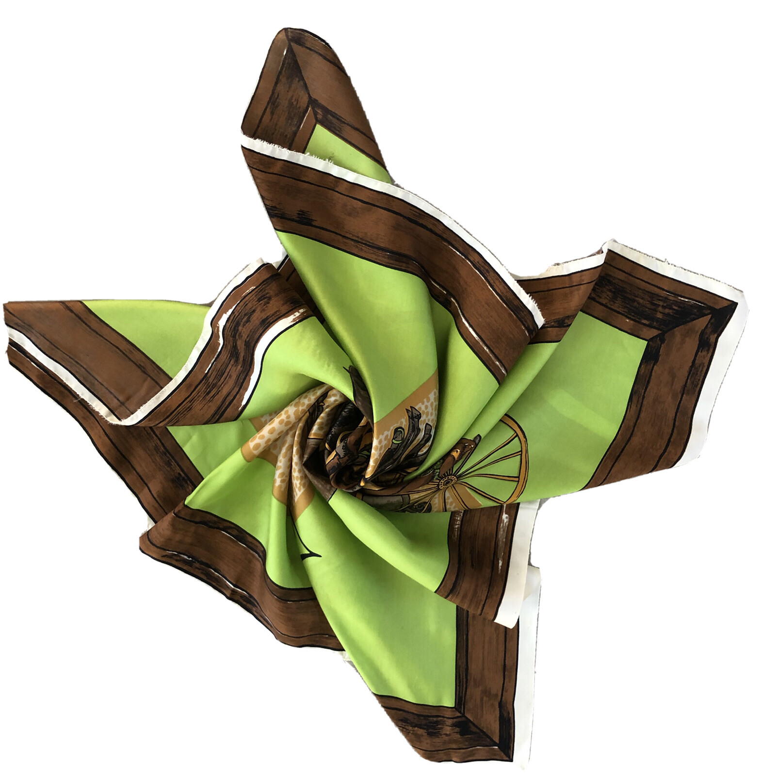 HOLLY HOELSCHER Silk Scarf Las Cienegas Horse Carriage Green Brown Square 36