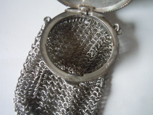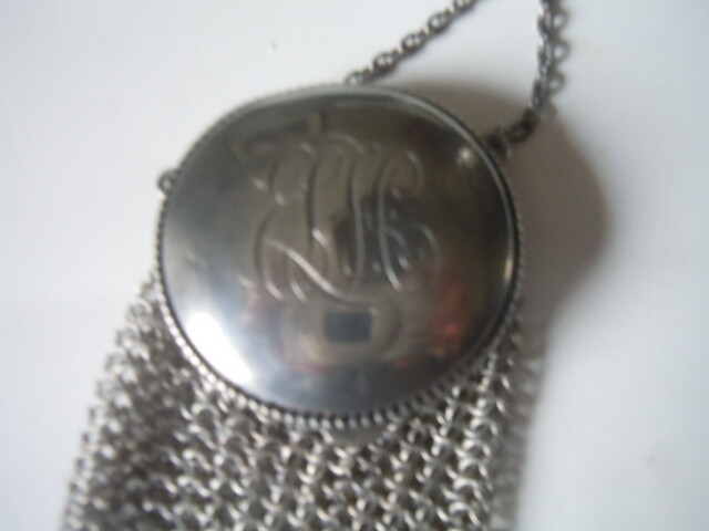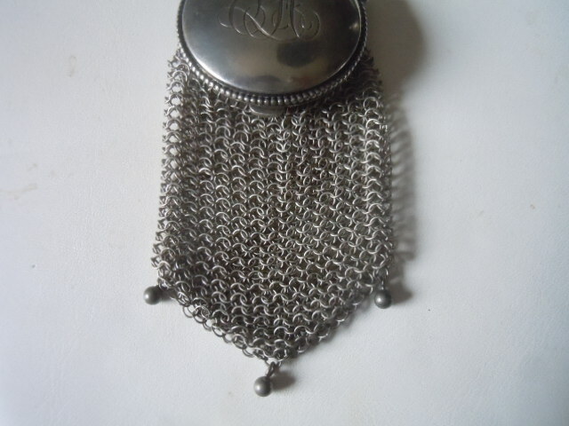 Vintage sterling silver mesh chatalaine monogrammed begger's purse