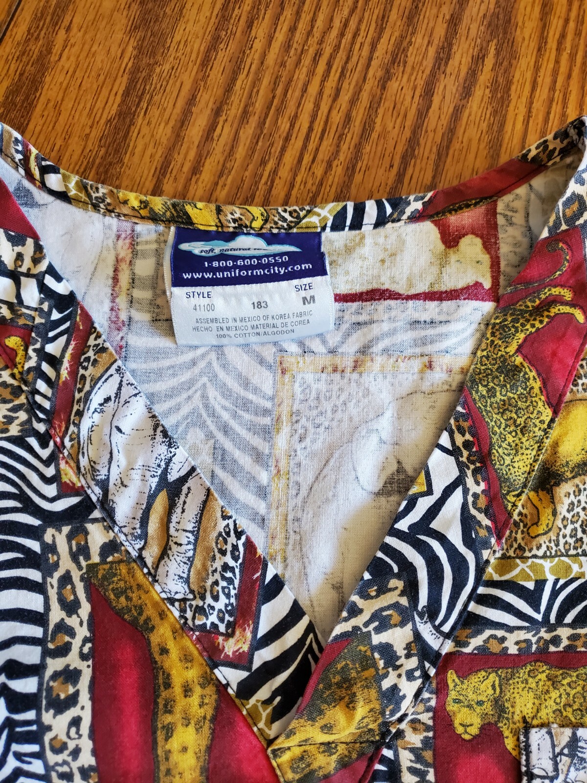 как выглядит Comfy Cotton Scrubs Safari Scrub Top Medium EUC Multicolored фото