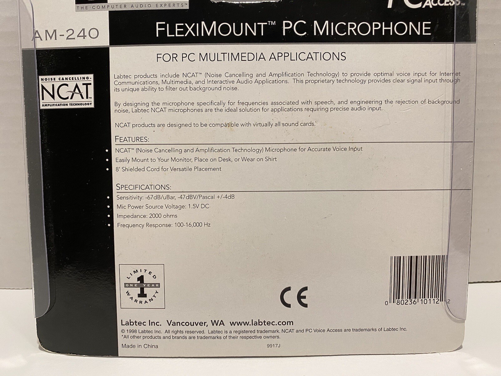 Labtec AM-240 Cable Consumer Microphone Fleximount PC Microphone Brand New
