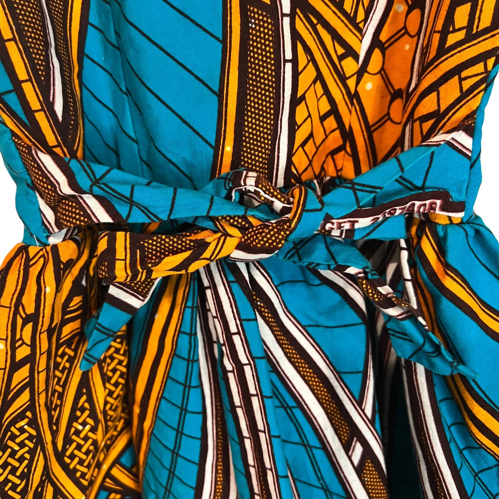как выглядит Turquoise and Gold Infant Girl Flair Out African Print Dress фото